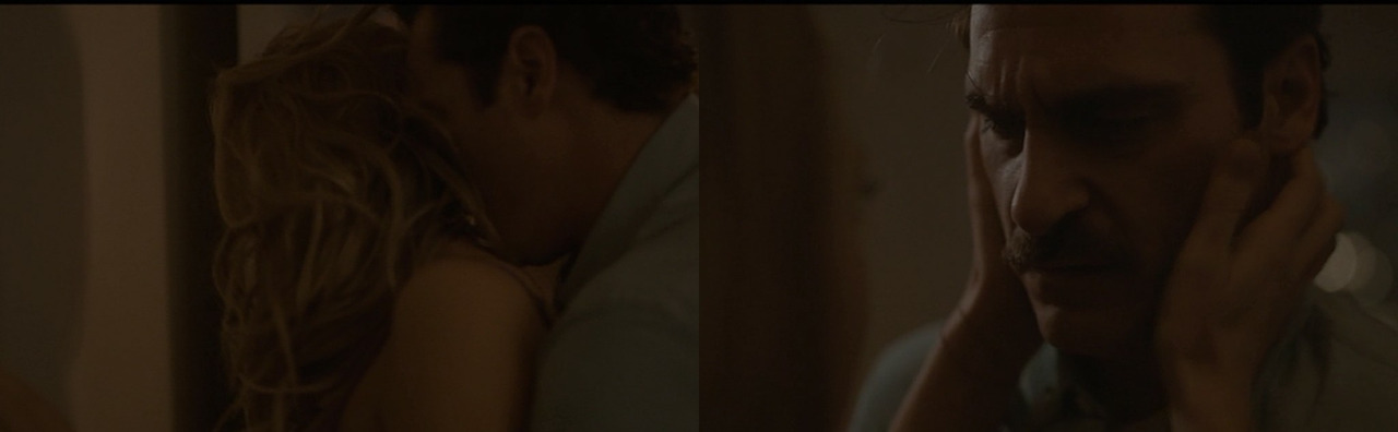 그렇기 때문에 사만다는 실체를 부여받지 못한다. 그녀는 스크린에 존재하지 않으며, 목소리로만 존재성을 부여받을 뿐. 영화에서 대화 장면은 기본적으로 숏/역앵글 숏(shot/reverse angle shot)으로 구성이 된다. 숏에서는 화자에 초점을 맞추고 청자는 등장하지 않거나 흐릿하게 어깨 등으로 프레임을 건다. 그럼에도 우리가 청자의 존재를 추측할 수 있는 것은 숏에 뒤이어 역앵글 숏이 등장하기 때문이다. 이런 방식이 아니라면 대화하는 인물들은 모두 한 컷에 담겨야 한다. 허나 사만다와 테오도르의 대화에서는 역앵글 숏이 존재할 수도 없고 두 인물을 모두 담을 수도 없다. 그렇기에 둘의 대화는 필연적으로 공허하다. 어쩌면 이들이 나누는 대화는 테오도르 혼자만의 독백일 수도. 그렇기에 그들이 달콤한 말들을 나누는 중에도 우리는 무엇인가 부재함을 느낀다.(*)