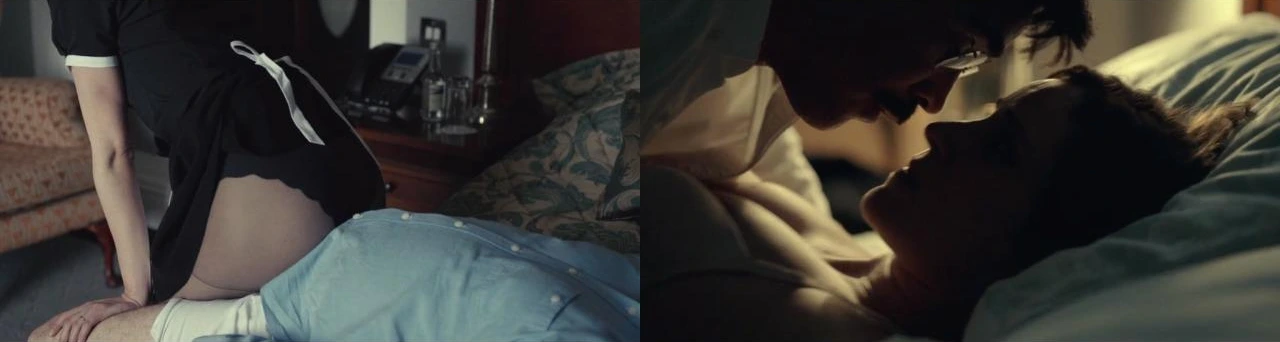 다시 영화가 구축한 세계로 돌아가 보자. 호텔은 없는 감정을 만들어내야 하는 공간이다. 이곳에서 자위는 금지된다. 자위를 한 자는 토스트기에 손을 넣은 채 처벌을 받는다. 한편 메이드는 엉덩이를 페니스에 문지르는 행위를 통해서 남성의 성욕을 들끓게 만들며, 우스꽝스러운 연기를 통해 커플의 장점을 선전한다. 이 세 씬은 동시에 일어난 사건이 아님에도 과도한 교차편집으로 구성되어 있다. 영화는 이 장면들을 씨실과 날실로 하여 호텔의 폭력적인 모습을 구축한다.