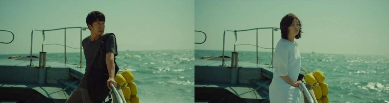 섬으로 향하는 배 위에서 다시 한번 카메라가 윤영을 이탈한다. 배 위에서 카메라는 윤영을 비추다가 팬(pan)하여 바다를 비춘 후 다시 주은을 비추는 것으로 둘의 연대를 이미지화한다. 그러나 섬에서도 그들은 대나무 숲에 갇히고 만다.(*) 그들은 바다로 내려가지만. 이후 이어지는 장면은 병실에 쓰러져있는 주은의 모습. 주은이 쓰러진 까닭은 바다를 마주해서일 테지만 경찰은 윤영을 몰아세운다. 서로 같은 아픔을 공유하지만, 서로를 돕는 것이 범죄로 취급되는 우리네 모습과 꼭 닮아있다.