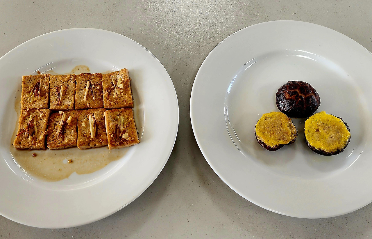 첫 조리 실습으로 표고버섯 전과 두부조림이 제시되었다. 나는 하나의 음식을 마치면 다음 음식을 하는 것에 익숙한데, 자격증을 받기 위해서는 두가지 음식을 동시에 하는 멀티플레이에 능해야 한단다. 아무래도 선천적으로 여성들이 멀티플레이에는 능수능란했다. 재료 썰기를 마치면 어느 재료가 어디에 들어가는지 헷갈렸다. 아~~ 포기할까 싶었다. 그냥 자격증은 됐고, 4개월 즐길까 하는 생각도 했다. 하지만 저 멀리 그 80대 어르신이 또 어른어른 했다.