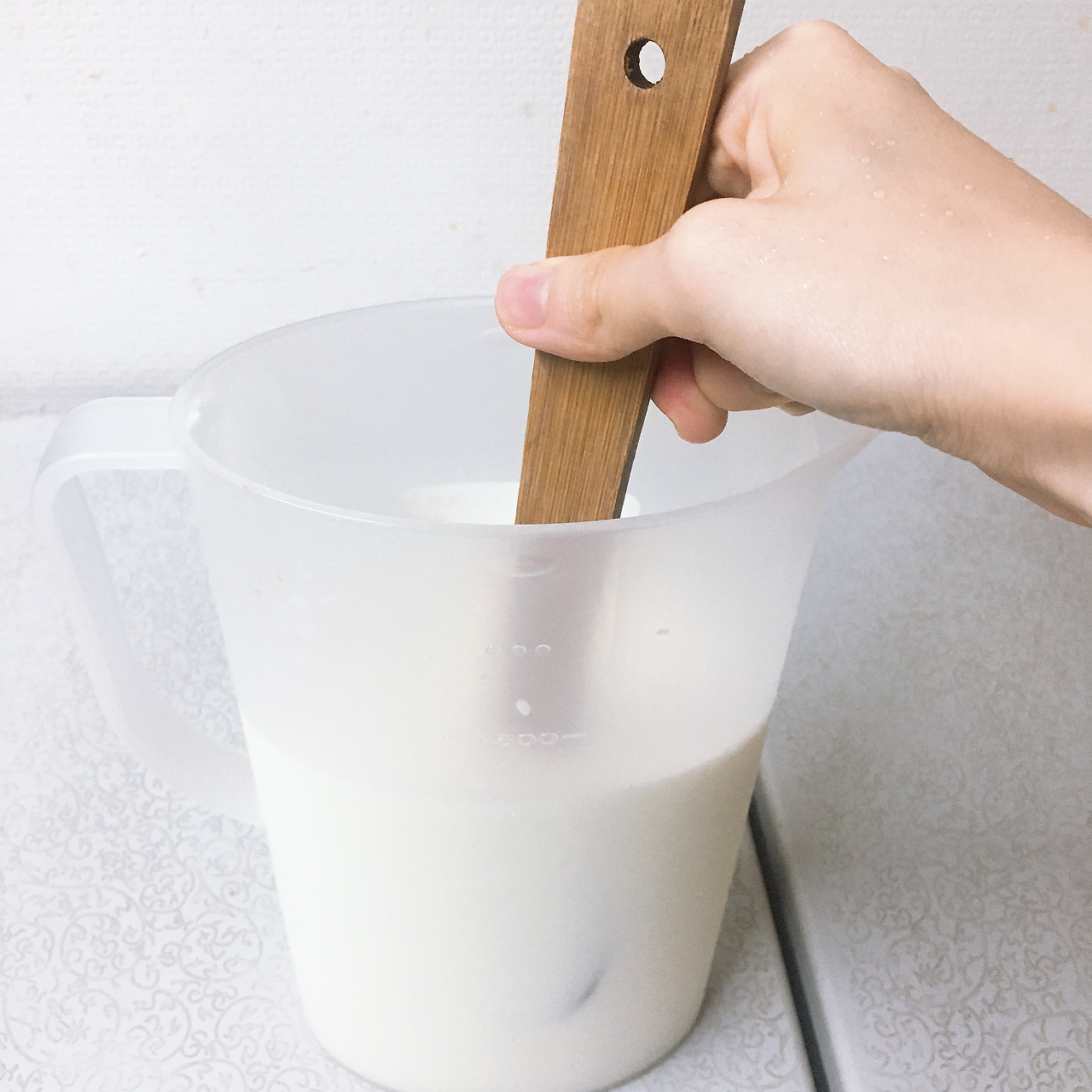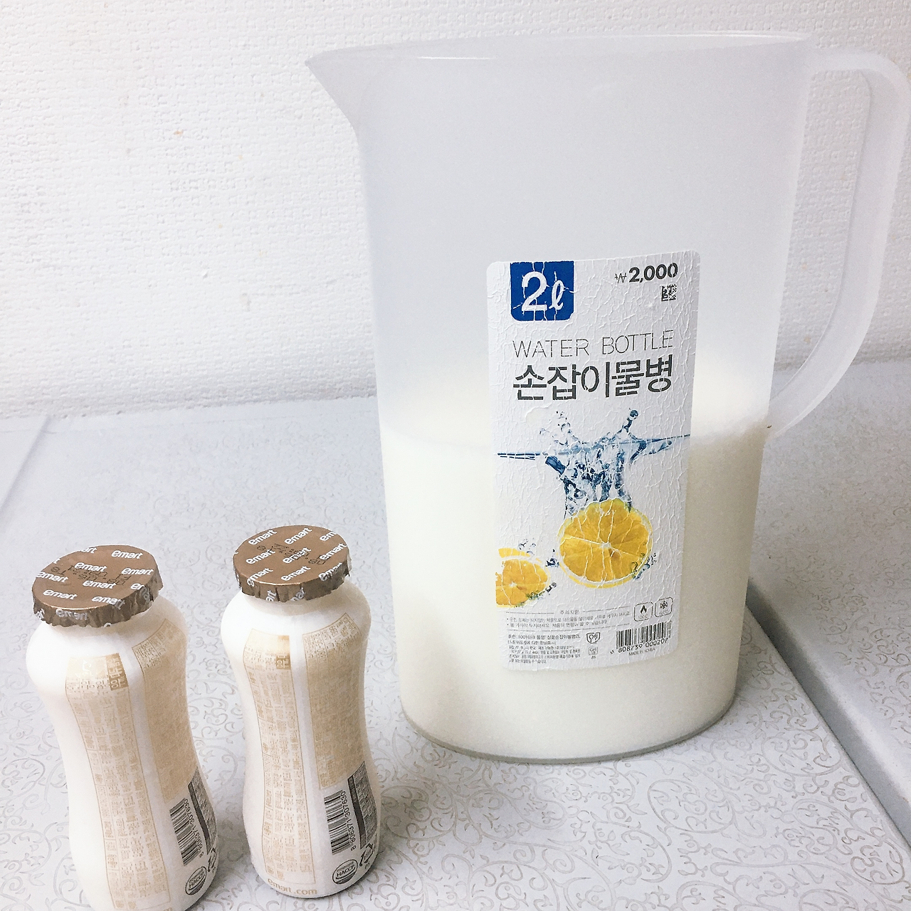 우유 900ml 혹은 1L와 130ml 사이즈 정도의 마시는 요구르트 2병을 준비한다. 단 저지방, 고칼슘 우유가 아닌 일반 우유로 선택한다. 마시는 요구르트는 서로 같은 제품을 사용해도 되고 다른 것을 써도 괜찮다.