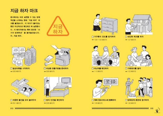 울산시에서는 지진행동 요령을 홈페이지에 게재했다가 입방아에 올랐습니다. '짐은 최소로' '침착하게 행동' '유언비어를 믿지 말자' 등. 너무나도 상식적인 내용 12가지를 공개했습니다. 하지만 이런 대응 매뉴얼로는 시민의 안전을 책임질 수 없습니다. 그러나 도쿄에서는 '지금 대비하자'라는 캐치프라이즈로 '도쿄 방재'를 내놓았습니다. 일본임에도 불구하고 한국어로 책자를 만들고 온라인에서 누구나 받을 수 있도록 PDF 파일로 제작되어 있었습니다.