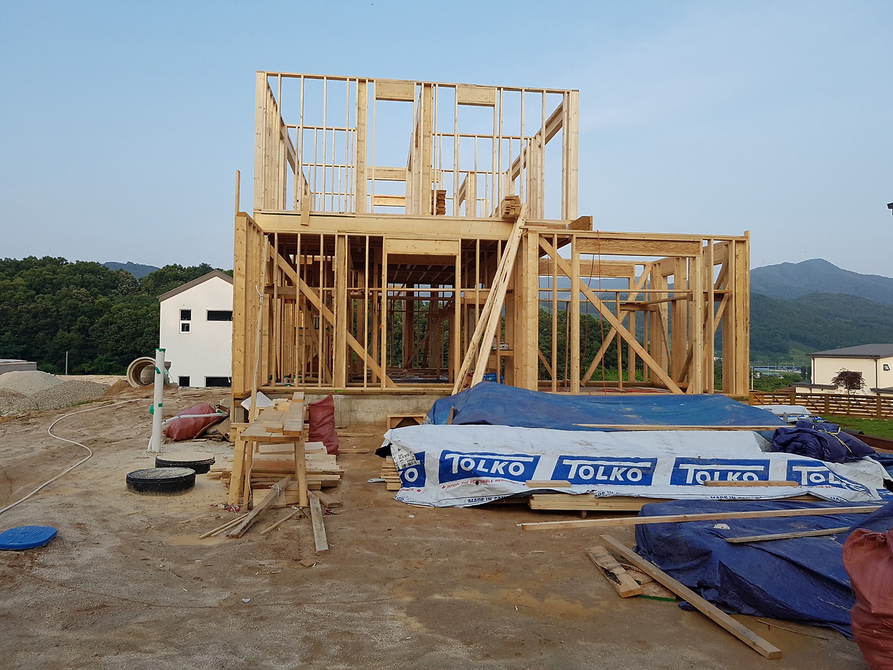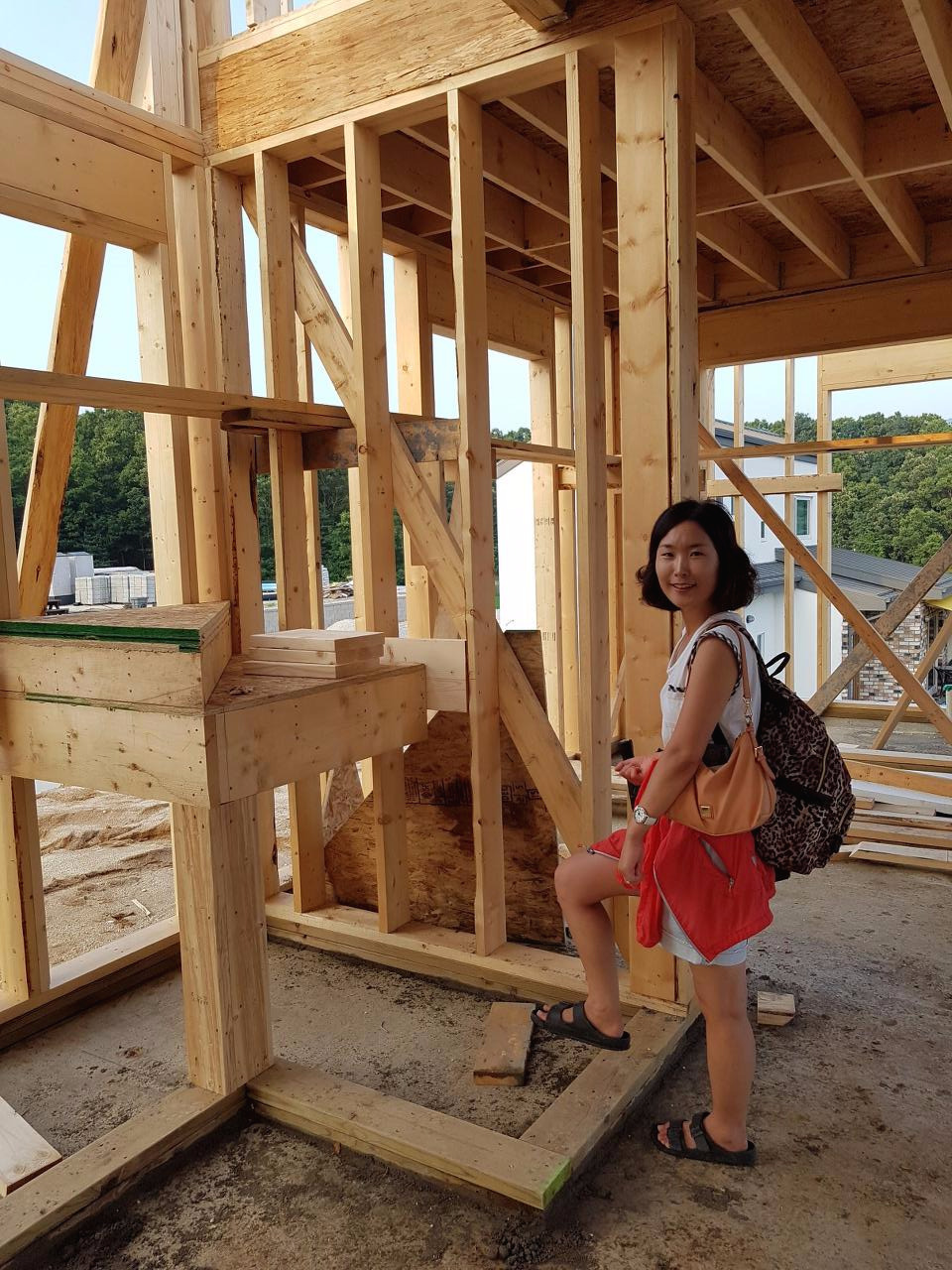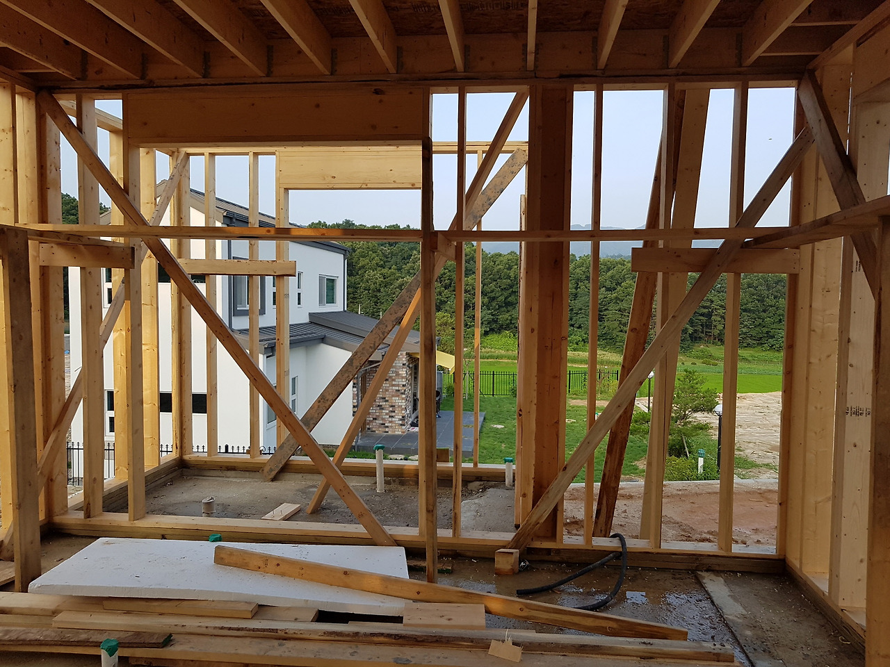 처음에 3D 도면으로 보았을 때와 현장에서 보는 목골조의 모습은 판이하게 달랐습니다. 20인치 모니터에서 보는 것과 눈을 통해서 와이드 하게 보이는 현장의 모습은 다르게 느껴졌습니다. 일단 사람은 자신보다 큰 규모를 보게 되면 움츠려 들게 됩니다. 하지만 신기하게도 목구조가 가지고 있는 따듯한 느낌은 보고만 있어도 마음이 편해졌습니다. 오늘은 3040 세대를 위한 예산에 대한 이야기와 함께 2층으로 올라간 현장을 소개드려 봅니다.