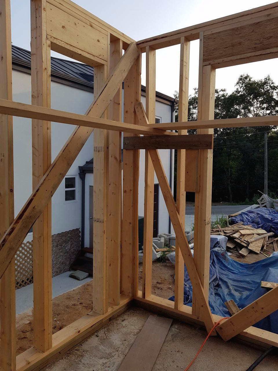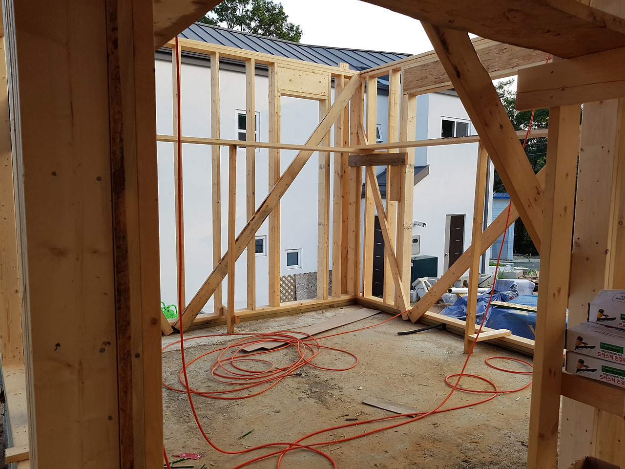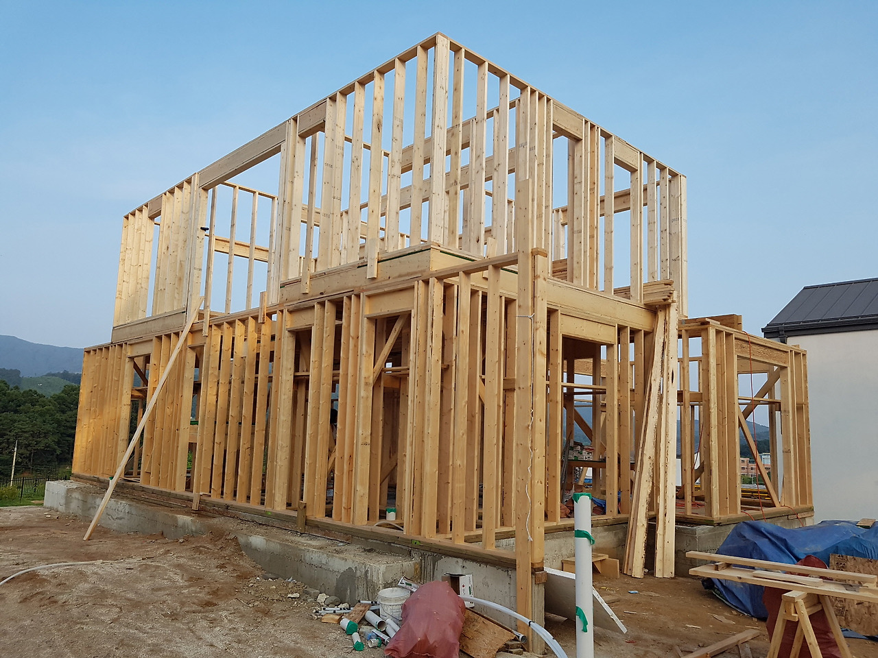처음에 3D 도면으로 보았을 때와 현장에서 보는 목골조의 모습은 판이하게 달랐습니다. 20인치 모니터에서 보는 것과 눈을 통해서 와이드 하게 보이는 현장의 모습은 다르게 느껴졌습니다. 일단 사람은 자신보다 큰 규모를 보게 되면 움츠려 들게 됩니다. 하지만 신기하게도 목구조가 가지고 있는 따듯한 느낌은 보고만 있어도 마음이 편해졌습니다. 오늘은 3040 세대를 위한 예산에 대한 이야기와 함께 2층으로 올라간 현장을 소개드려 봅니다.