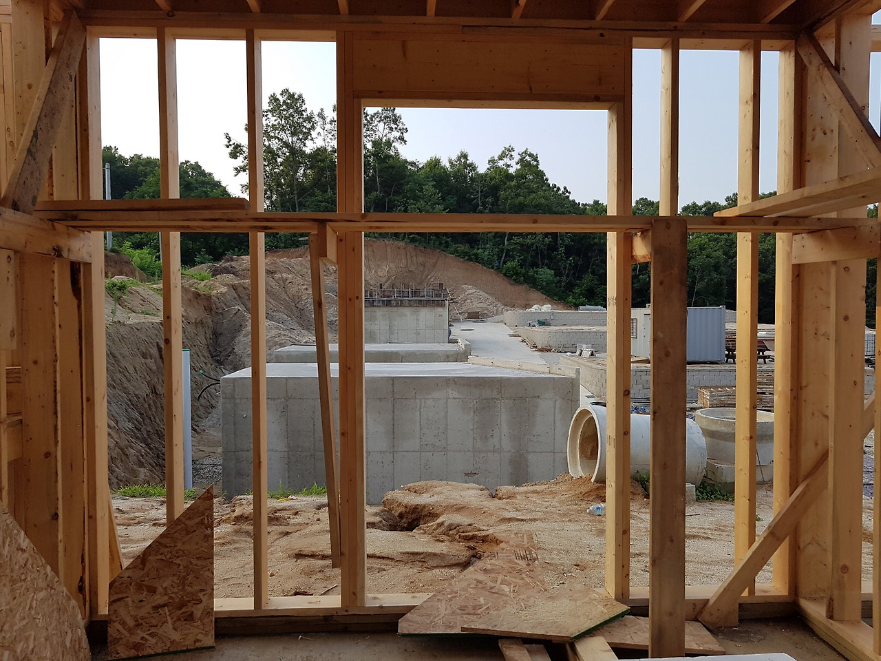 2층까지 올라간 구조를 보면서 아내와 저는 석양을 맞이 했습니다. 그리고 마지막 버스를 놓치지 않기 위해 내려가야만 했습니다. 집을 둘러보며 기대 이상으로 쭉쭉 뻗은 골조로 인해서 마음이 든든해졌습니다. 골조가 없을 때는 기초 너비만 보고 집이 왜 이렇게 작은지 새삼 걱정했지만. 이제 설계대로 평수가 나오는 것 같아 기뻤습니다.