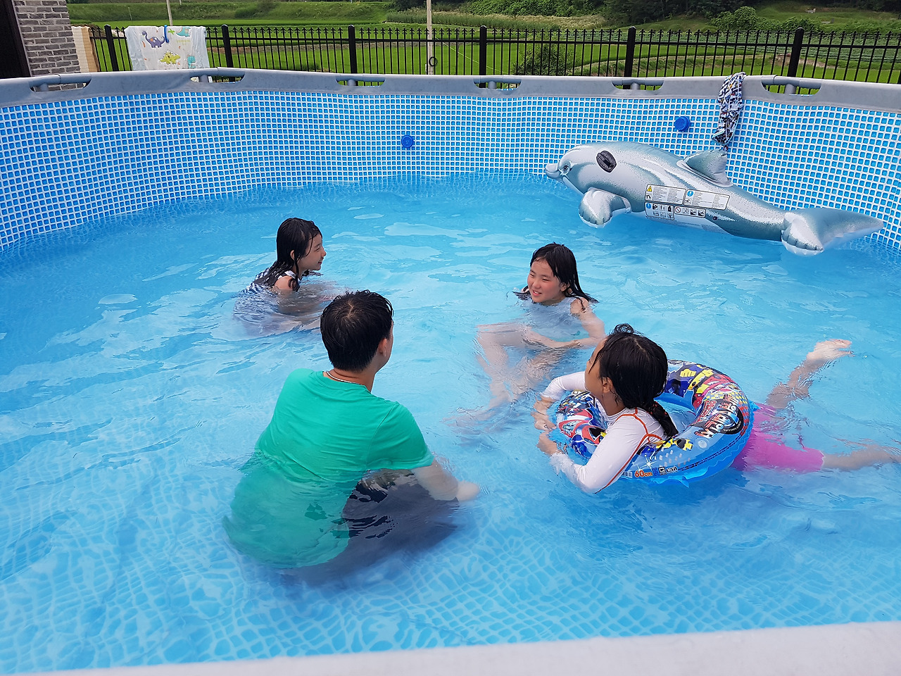 마을에는 아이들이 많다. 그리고 이렇게 여름에는 물장구를 함께 치며 놀 수도 있다. 학원은 필요 없다. 삶 자체가 학원이다.