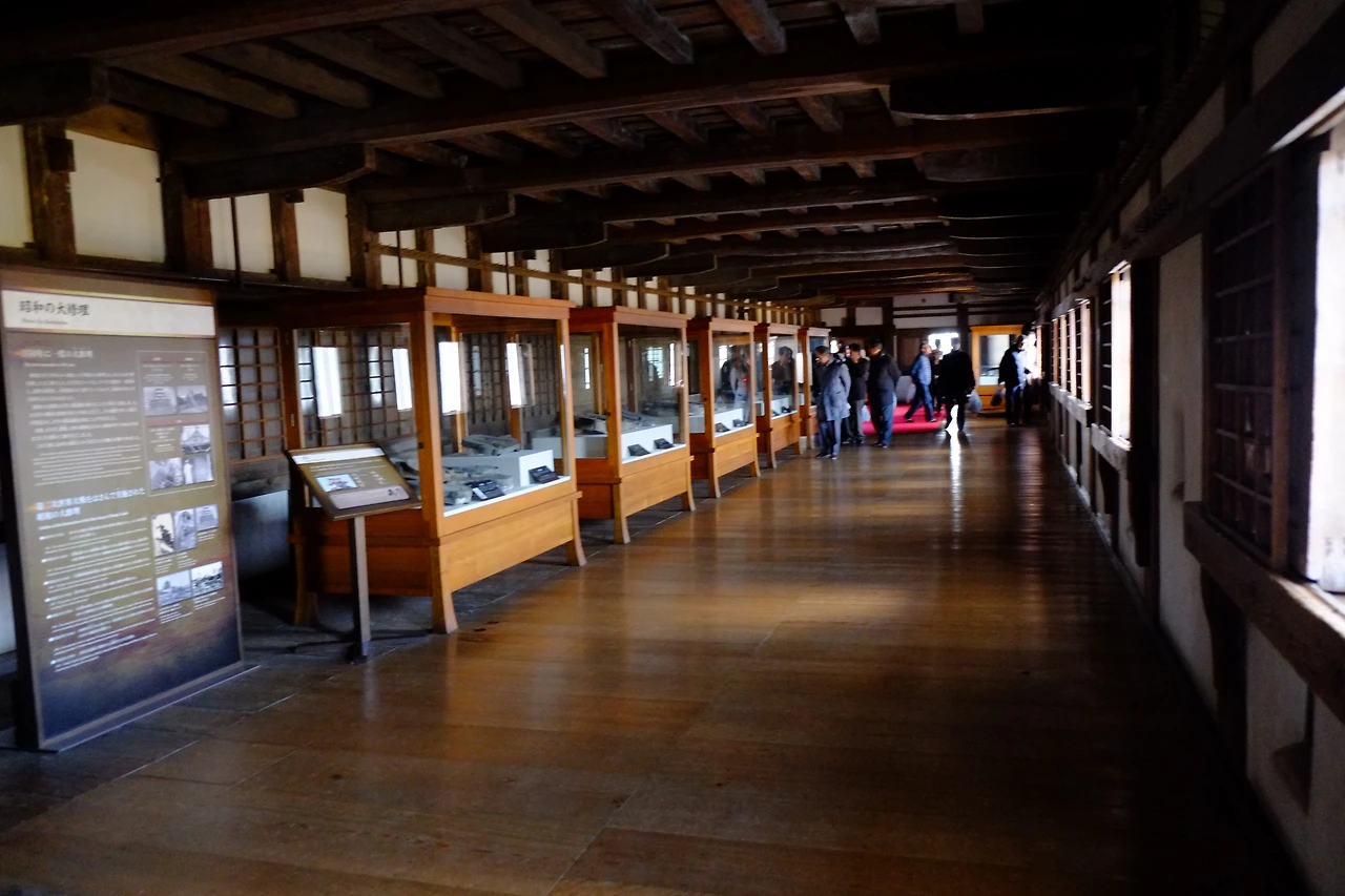 물론 일본에서 성을 구축하였을 당시에 기둥 설계가 잘못되어 성이 계속 기울었다고 합니다. 피사 탑처럼 기우는 성을 복구할 수 없어 모두 안타까워하며 지켜보다 비교적 최근에 들어서 보수공사를 통해 개선했습니다. 그래서 새로운 기둥과 이전 기둥에 대한 설명을 볼 수 있습니다.