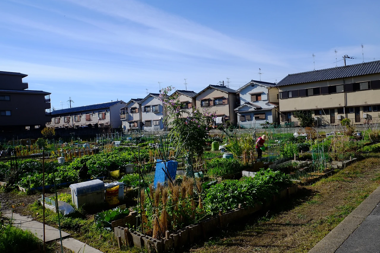 과거 일본 단카이 세대 (1947년 - 1949년 사이에 태어난 세대)가 베이비붐으로 인해서 부동산 경기가 급격히 상승할 때가 있었다고 합니다. 일본 도쿄는 물론이고 오사카 주변의 대부분 땅에는 우후죽순으로 집이 들어섰고 도쿄에 직장이 있는 사람들 역시 외곽으로 밀려났다고 합니다. 하지만 그 인구가 은퇴를 하는 시기가 되고 인구가 줄어들기 시작하자 집은 이렇게 텃밭으로 바뀌게 되었습니다.