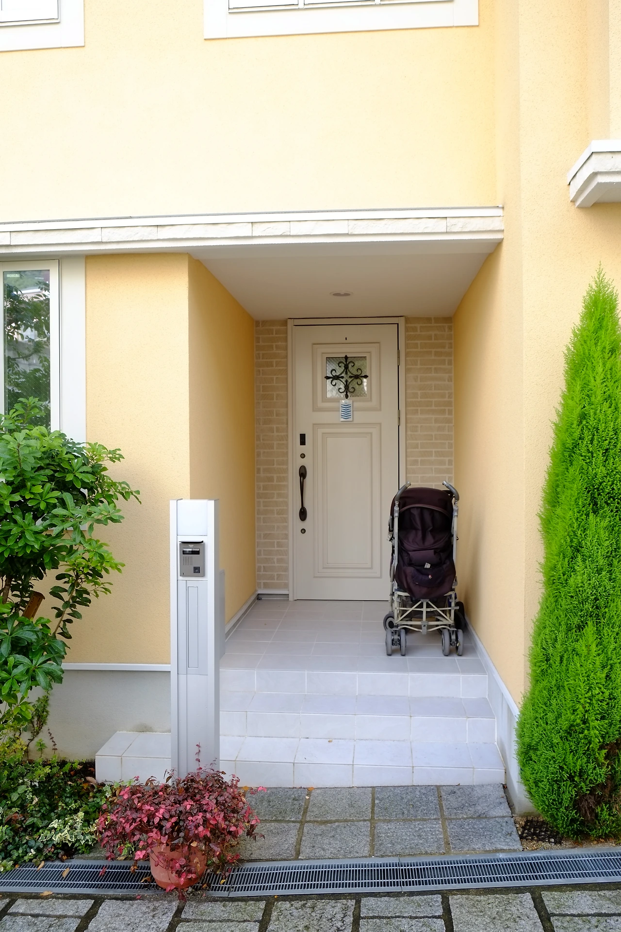 위에 보이는 인터폰의 경우에도 현관까지 들어가서 누르는 것이 아닙니다. 현관 앞 계단까지 외부인이 다가설 수 있는 모습입니다. 물론 일본의 모든 주택이 위처럼 시공되는 것은 아니지만 최근 주택들은 이렇게 시공되고 있었습니다. 벽에 붙여서 설치하는 비디오폰 보다는 좀 더 비싼 시공비가 예상됩니다. 제가 살게 될 양평지역 전원주택에서는 시도되지 않은 부분이라 관심이 갔습니다.