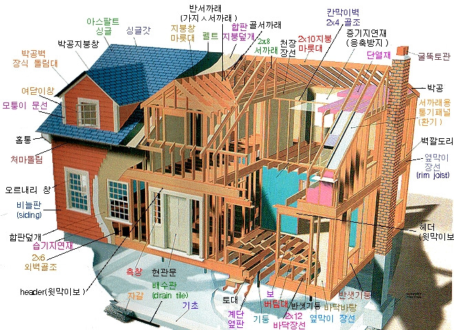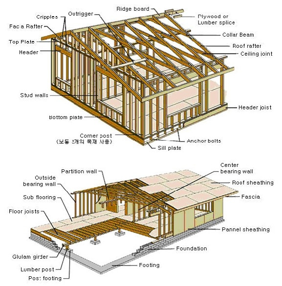 우리나라의 경량 목구조는 북미식 경량 목구조입니다. 20년 전쯤에 목구조로 집을 지은 분들의 이야기를 들은 적이 있습니다. 그때는 캐나다 사람들이 와서 집을 짓고 갔다는 이야기에 놀라움을 감추지 못했던 적도 있습니다. 그래서 그런지 내벽 외벽 모두 2*4로 짓고 지하 창고를 짓는 등. 정말 미국에 나오는 듯한 집이 탄생했다고 합니다. 현재 우리나라에서는 여러 가지 개선을 거쳐서 우리나라에 맞는 기후와 풍토에 따라 경량 목구조가 발전했습니다.
