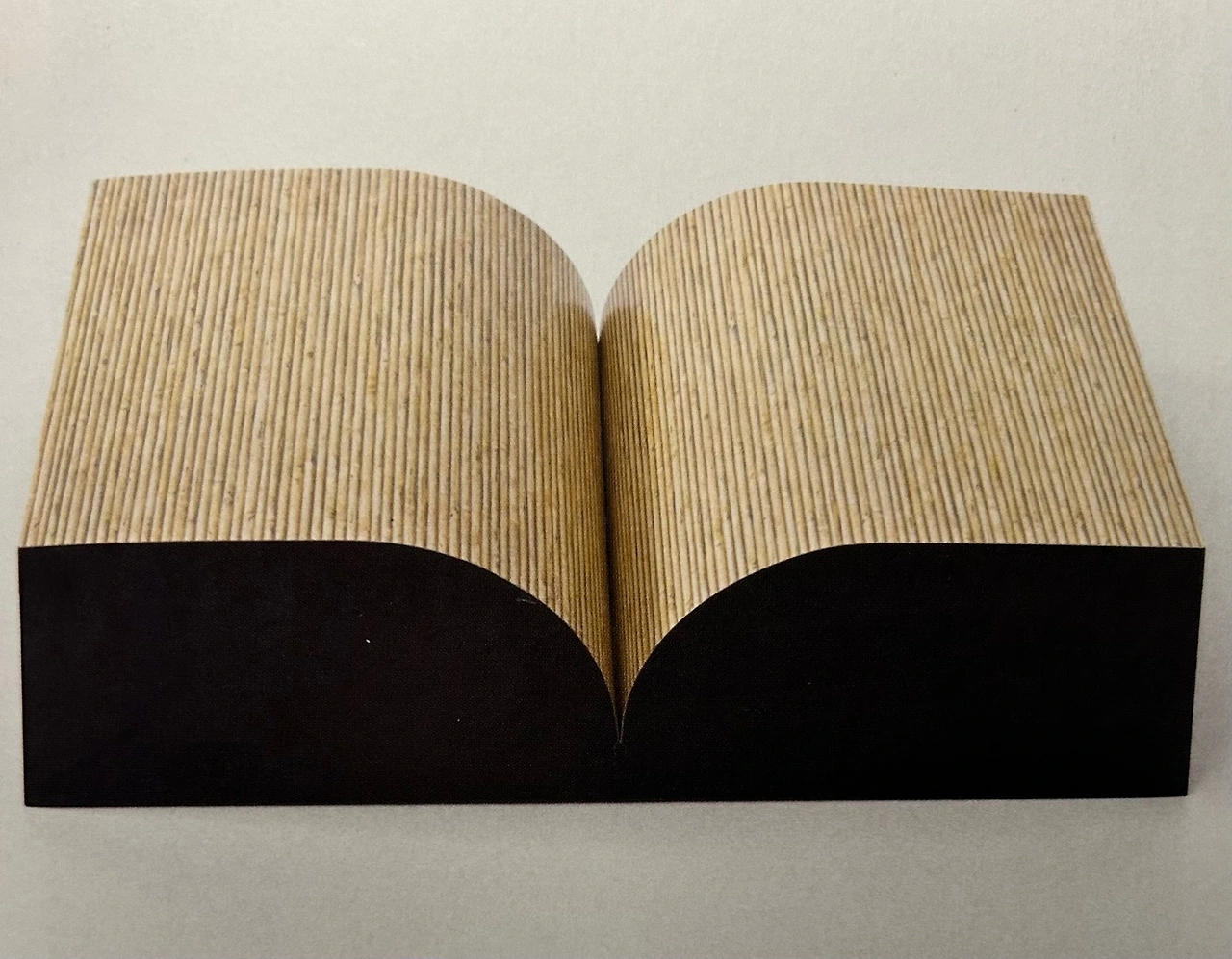 아치 워거는 책의 물성이 지닌 아름다움을 책의 태생인 종이, 종이의 태생인 나무를 가지고 구현했다. 아이콘처럼 간결한 곡선과 직선의 조화, 종이 결을 상징하는 듯한 나뭇결과 묵직해 보이는 덩어리감까지, 애서가의 시선을 사로잡는 작품이다. 실제로 작품을 봤다면 나무 특유의 은은한 향까지 더해졌을 것 같다.