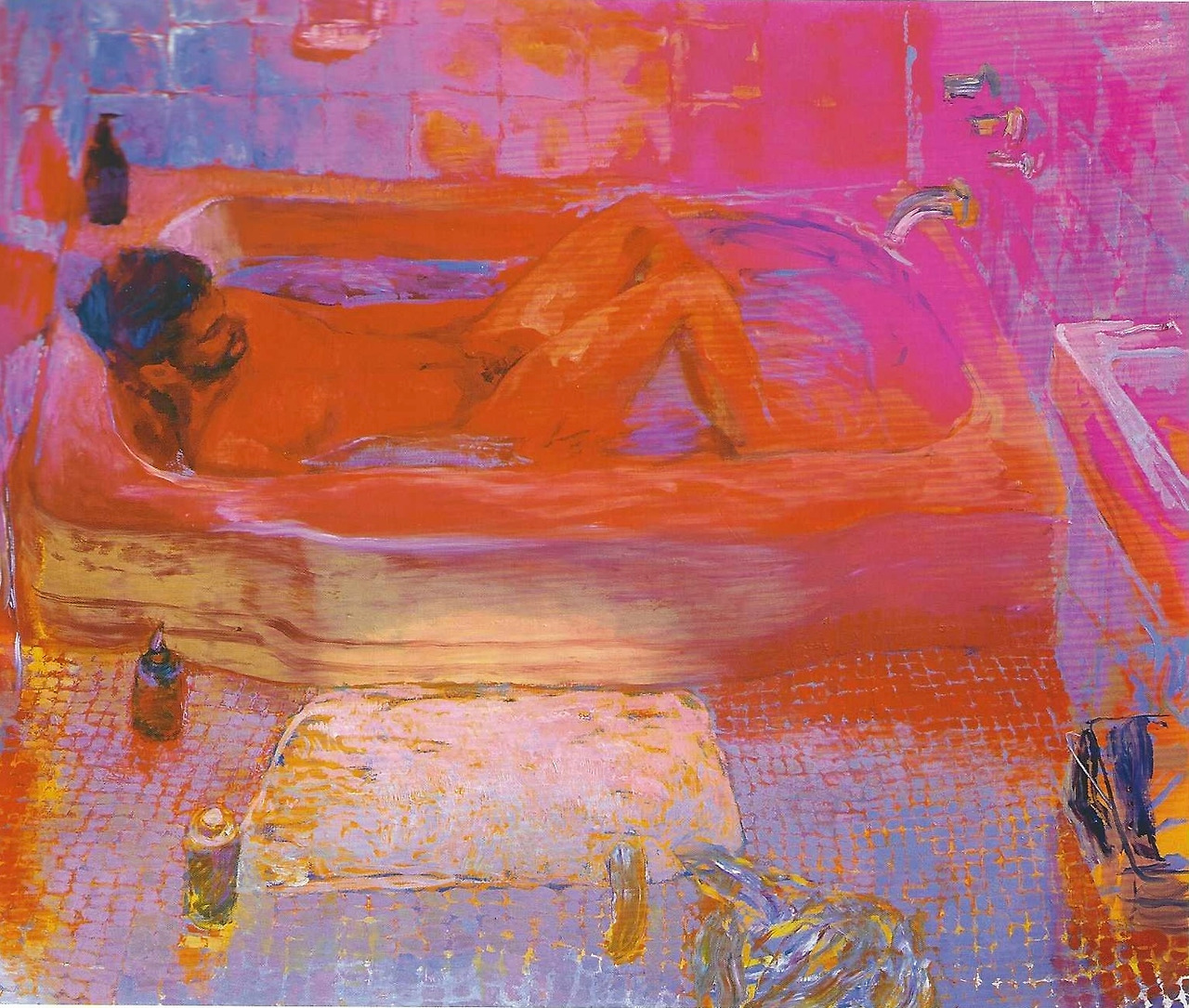 핏빛 욕조에 누운 이 남자는 자는 걸까? 죽은 걸까? 아무래도 모든 그림을 따뜻한 시선으로 보고 있는 요즘 나에게 이 그림도 살인현장보다는 몽환적인 꿈을 꾸고 있는 듯 포근하게만 느껴진다. 핑크색과 붉은색, 주황색에 보라색까지 조화를 이루고 있는 이 욕실에서 남자는 현실에서 동떨어진 새로운 세계에서 꿈을 꾸고 있는 듯 느껴진다.