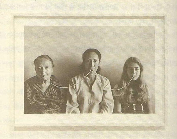 3대에 걸친 모녀가 탯줄 같은 가는 끈을 입에 물고 있다. 이 탯줄은 가운데 앉은 여성에 의해 또 다른 엄마와 딸과 서로 이어진다. 입으로 물고 있기 때문에 끈은 타액에 조금씩 젖어 들지도 모른다. 그만큼 친밀한 관계일 수 있지만 거부감 드는 관계일 수도 있다. 누군가 입을 벌리는 순간 연결은 금세 끊어질지도 모른다. 아슬아슬하다.