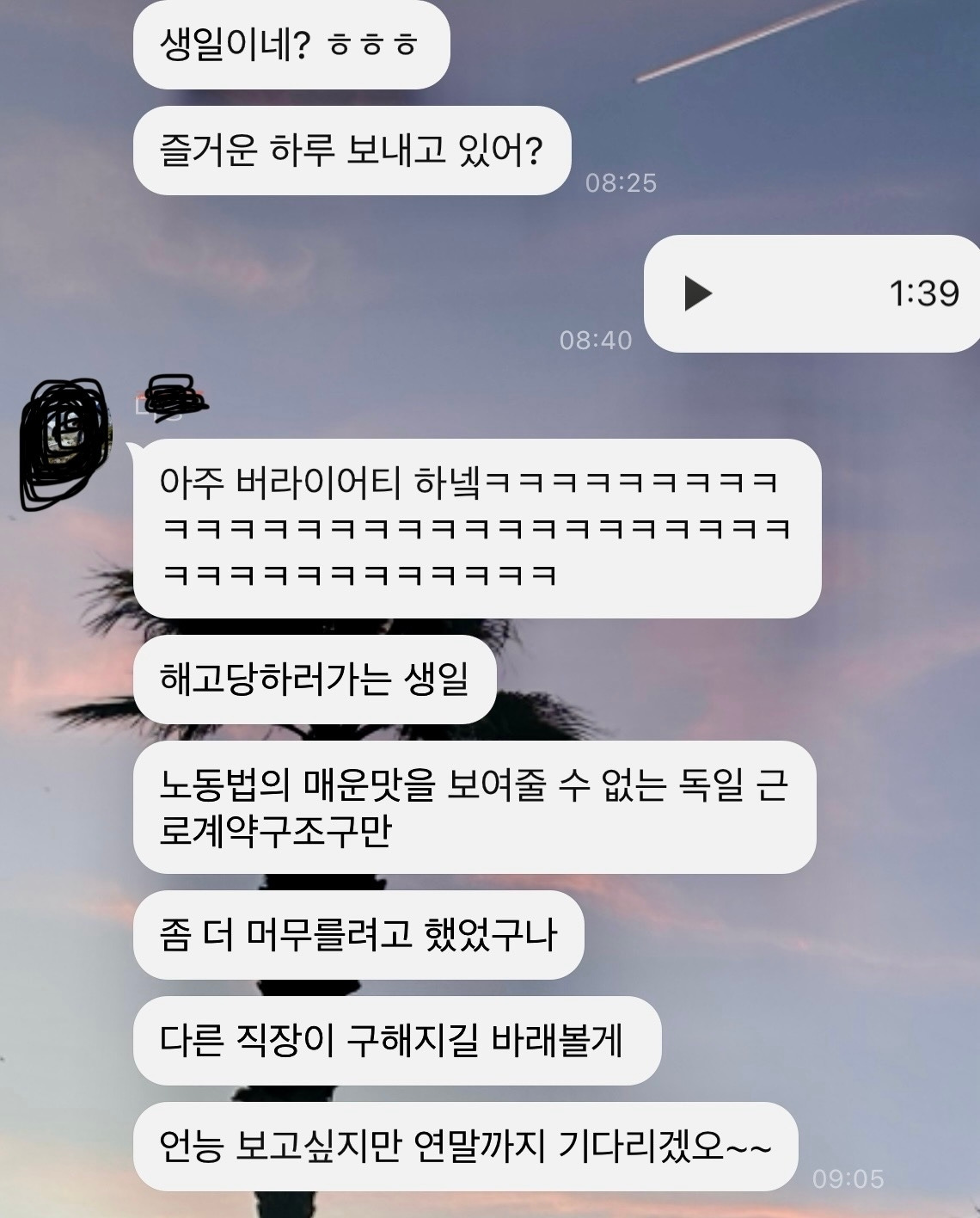 이 날은 하필 내 생일이었다!.. 당일 또 다른 노무사 친구와 나눈 카톡ㅎㅎ