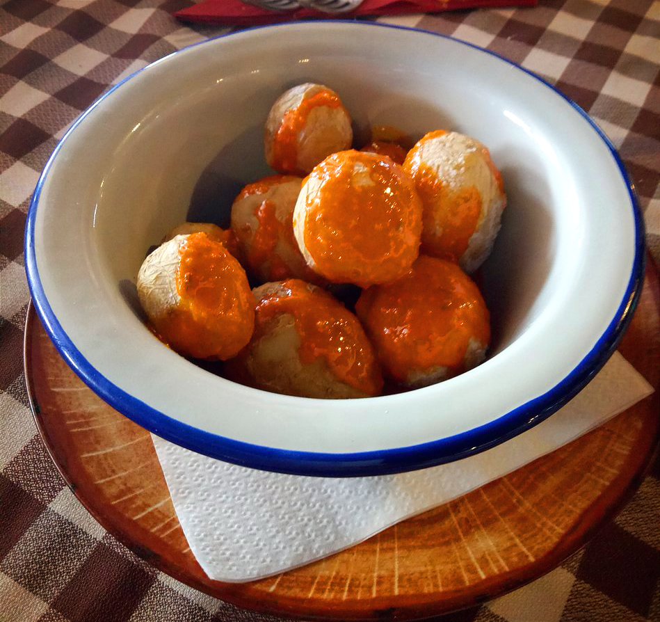 오늘은 먹는 이야기가 나왔으니 내가 란사로테에서 자주 먹었던 음식에 대해 소개를 해보려고 해. 란사로테는 스페인이지만 아프리카 연안에 위치하는 조금은 특별한 지리적 특성과 문화적 배경 때문에 독특한 요리가 제법 많은 편이다. 오묘하게 스페인과 북아프리카의 문화가 섞인 음식이라고 할까? 란사로테에서 가장 많이 먹은 음식이 무엇이냐고 묻는다면 단연 '감자튀김'요리야. 파파스 아루가다스(papas arrugadas)라고 불리는 이 감자튀김은 소금물에 삶은 작은 감자로 만든 요리야. '모조'라고 불리는 소스에 찍어 먹는 형태인데 모조 소스는 매콤한 소스부터 고소한 소스까지 맛의 풍미가 다양해. 감자 자체도 짭조름하니 맛있지만 올리브오일, 마늘, 파프리카 등의 재료를 넣어 만든 소스맛이 좋아 더 손에 자주 갔던 것 같기도 해. 우리 부부처럼 감자튀김의 맛을 잊지 못해 한국에 다시 돌아온 뒤 소스만이라도 찾아보니까, 정말 '모조'라는 소스를 따로 팔기도 하더라고. 언젠가 내가 감자튀김을 배우게 된다면 가장 먼저 요리를 해줄게.