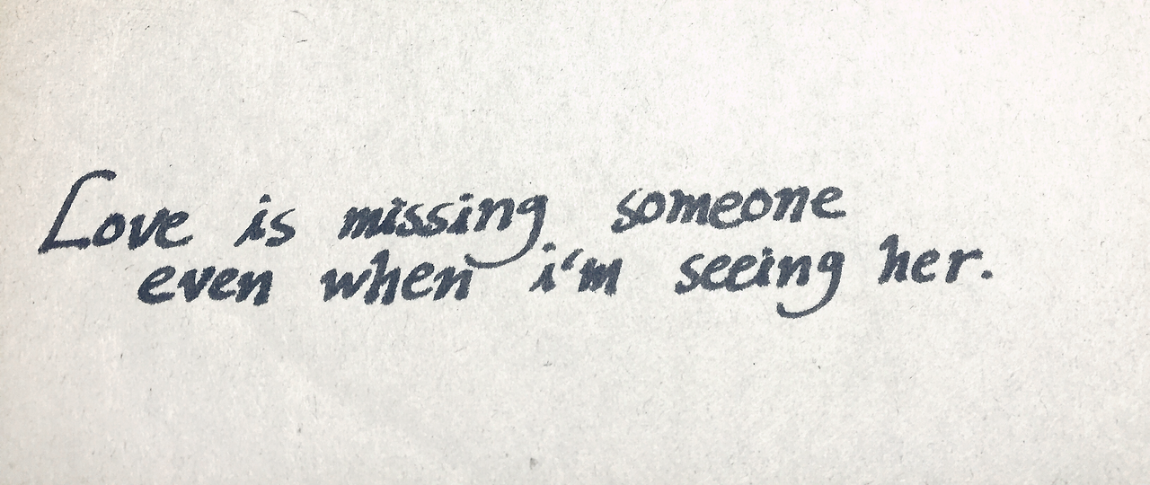 사랑은 누군가를 계속해서 그리워하는거에요. 심지어 내가 그녀를 보고 있을 때 조차도요.