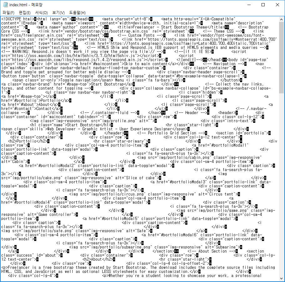 - 저장한다. (온라인에서 작업 중이었다면 다시 index.html을 열어뒀던 메모장으로 옮겨서 저장)