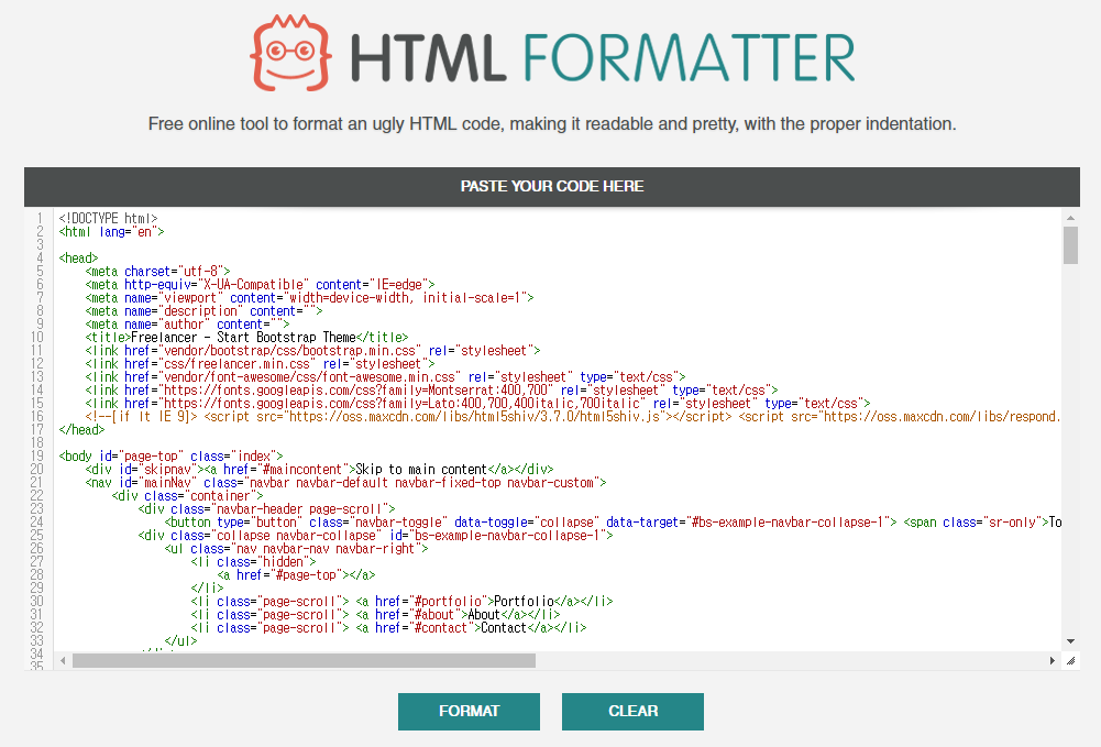 메모장에서처럼 정체를 알아볼 수 없는 글자의 집합을 아름답고 예쁘게 표시해주는 formatter나 beautifier를 이용해보자. 프로그램을 따로 설치할 필요 없이 온라인으로 접속하고 메모장에서 Copy&Paste(a.k.a. 복붙)해서 쓸 수 있다.