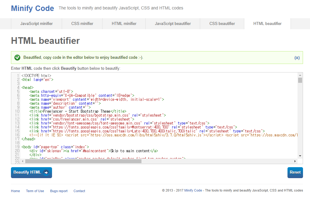 http://minifycode.com/html-beautifier/