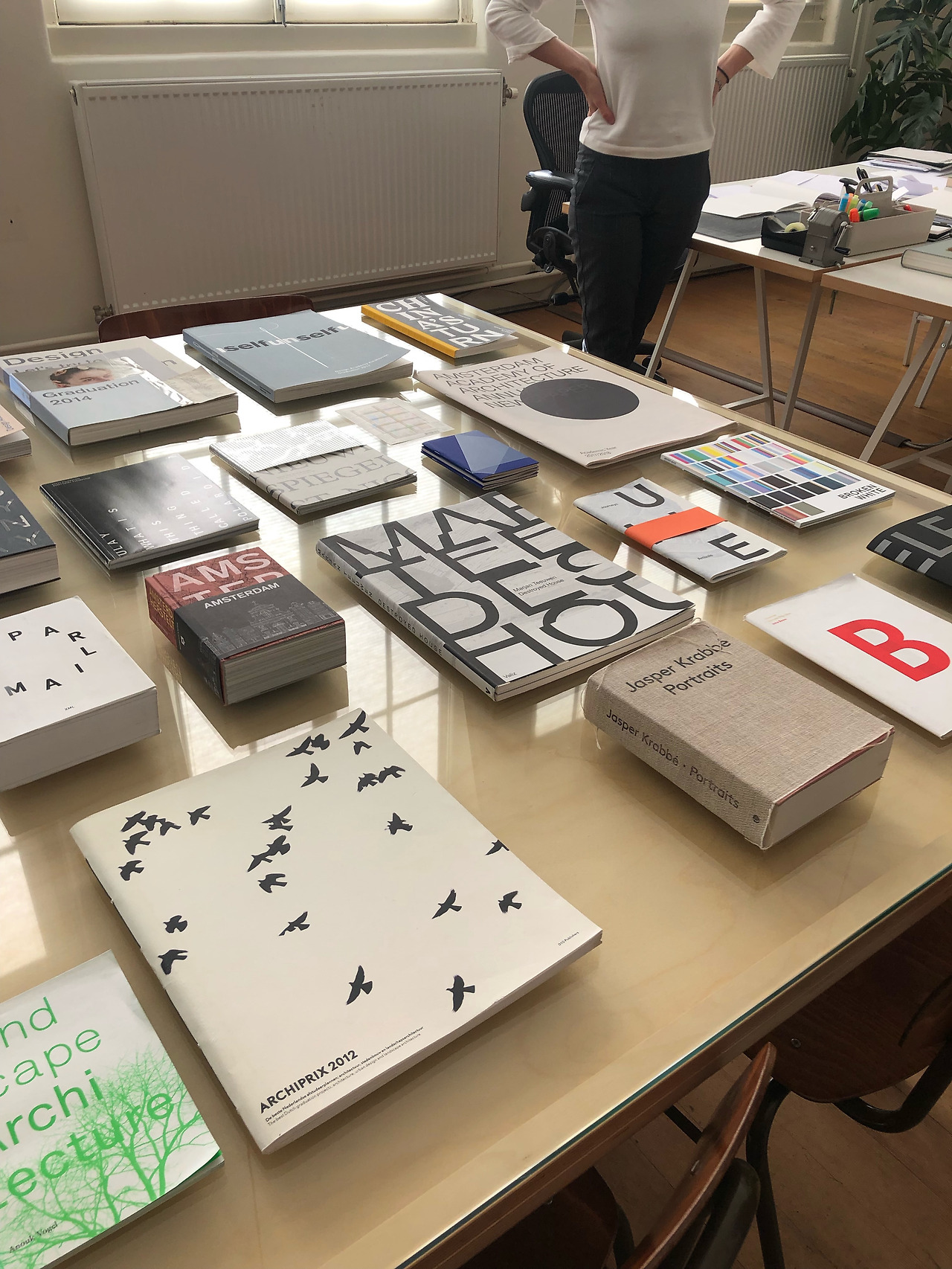 처음 스튜디오 안에 딱 발을 디뎠을 때, 스튜디오는 마치 서점에 온 것처럼 책으로 가득 차 있었다. 흰 벽의 스튜디오 중앙에 커다란 정사각 꼴 테이블이 있었고, 그 위에 오늘 우리에게 보여 줄 책들이 빼곡히 뉘어있었다.