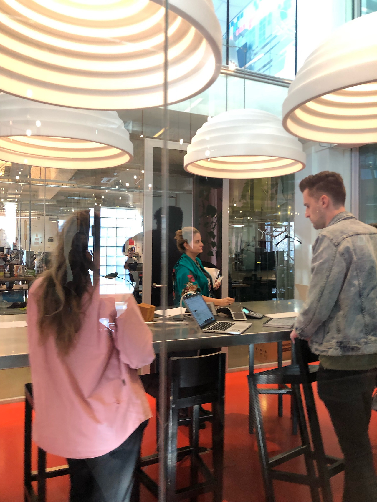 정말이지 W+K 는 내가 인턴 혹은 디자이너로 일해보고 싶다고 꿈꿔온 장소를 현실로 불러온 곳 같았다. 전체적인 오피스의 분위기는 뭐랄까.. 엄청 Chill 한 느낌? W+K 에는 작업 스튜디오뿐만 아니라 헬스장, 카페 그리고 펍까지 스튜디오를 이용하는 모두가 이용할 수 있는 휴게공간이 구성되어있었는데, 사람들은 여기저기에서 편안한 복장으로 마치 친구와 놀러 온 듯 모여 앉아 회의를 하고, 작업을 하고 있었다.