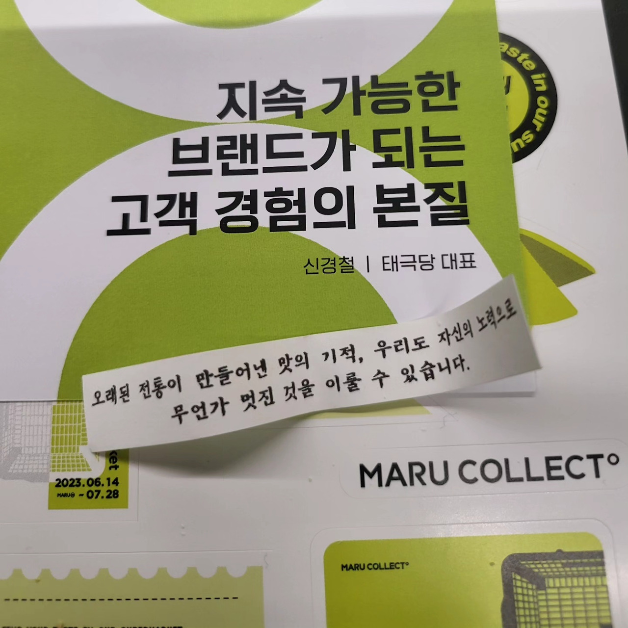 한 가지 이야기를 어떻게 꾸준히 하느냐를 늘 고민하셨다고 한다. 잘 하는 것을 잘 지켜내고 보여주는 것이 태극당의 전략이었다. "많은 것이 바뀌었지만 아무것도 바꾸지 않았습니다." 대표님이 늘 강연마다 하시는 말이다. 선택과 집중 변화와 혁신. 기본인 것 같지만 사실 쉬운 일은 아니다. 그냥 오래 된 빵집이 아니라 이 시대의 가치를 만들어 가고 싶다고 하셨다. 창업가들에게 상표권 공부를 해두면 도움이 된다고 하셨고, 사업이라고 하는 것은 한 우물만 파면 안 되고 그 사업을 지키기 위해서 다양한 곳에도 투자하는 안목을 가져야 한다고 하셨다. 많은 도움이 되는 강연이었다.