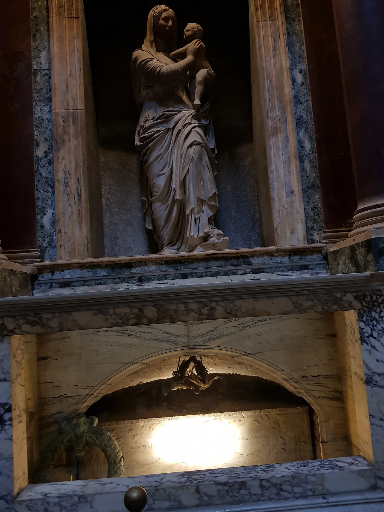 판테온의 내부 곳곳에 주검들을 안치한 무덤이 여럿 있다. 신의 공간 안에서 래된 음과 살아 움직이는 이들이 한곳에 만나는 시간은 무겁지도 가볍지도 않았다. 이곳에는 이탈리아의 국부로 추앙받는 움베르토 1세, 엠마누엘레 2세가 묻혀있다. 내가 놀란 건 왕들과 함께 르네상스 천재화가 라파엘로와 카라치, 유명한 작곡가와 건축가들이 그곳에 나란히 잠들어 있다는 사실이었다. 예술가에 대한 그들의 헌사가, 거장에 대한 예우가, 위대한 왕에 대한 존경과 다르지 않다는 것에 부러움과 경외가 일었다.