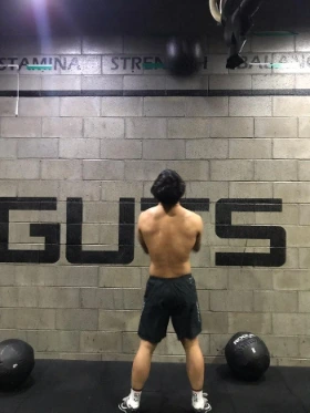 딱 맞는 사이즈에 면 소재 운동복 그리고 땀 폭발을 부르는 WOD, 요것들은 상의 탈의를 부르는 조합이다. 어제 내가 입은 옷과 WOD가 그랬다. 어제의 우드는 20-19-18-17..... 3-2-1 월 볼 샷과 버피로 조합됐었다. 그러니까 총 210개의 월 볼 샷과 210개의 버피를 해야 한다. 아-내가 가장 혐오하는 운동에다가 악마의 운동이라 불리는 버피라니. 상상만으로도 땀 폭발 WOD였고, 실제로 20개의 월 볼 샷과 20개의 버피를 수행한 첫 라운드가 끝나자마자 머리-가슴-배에 이르는 개미 라인에 땀이 흥건해졌다. 코치님들이 추천하는 무게 즉 RXD 20파운드가 아닌 14파운드로 수행했음에도 말이다. 그 흥건해진 땀은 면 티를 적셨고, 젖은 면 티는 나를 답답하고 불쾌하게 구속했다. 마치 한 여름에 땀에 흥건하게 젖어 내 몸에 착착 달라붙는 면 티를 입고 있는 것처럼. 그 답답하고 불쾌함에 못 이겨 결국 반년 만에 부끄러운 상의 탈의를 실시했다. (나 스스로가 만족스러운 몸이 되기 전까지는 상탈을 할 계획에 없었는데 말이다.)