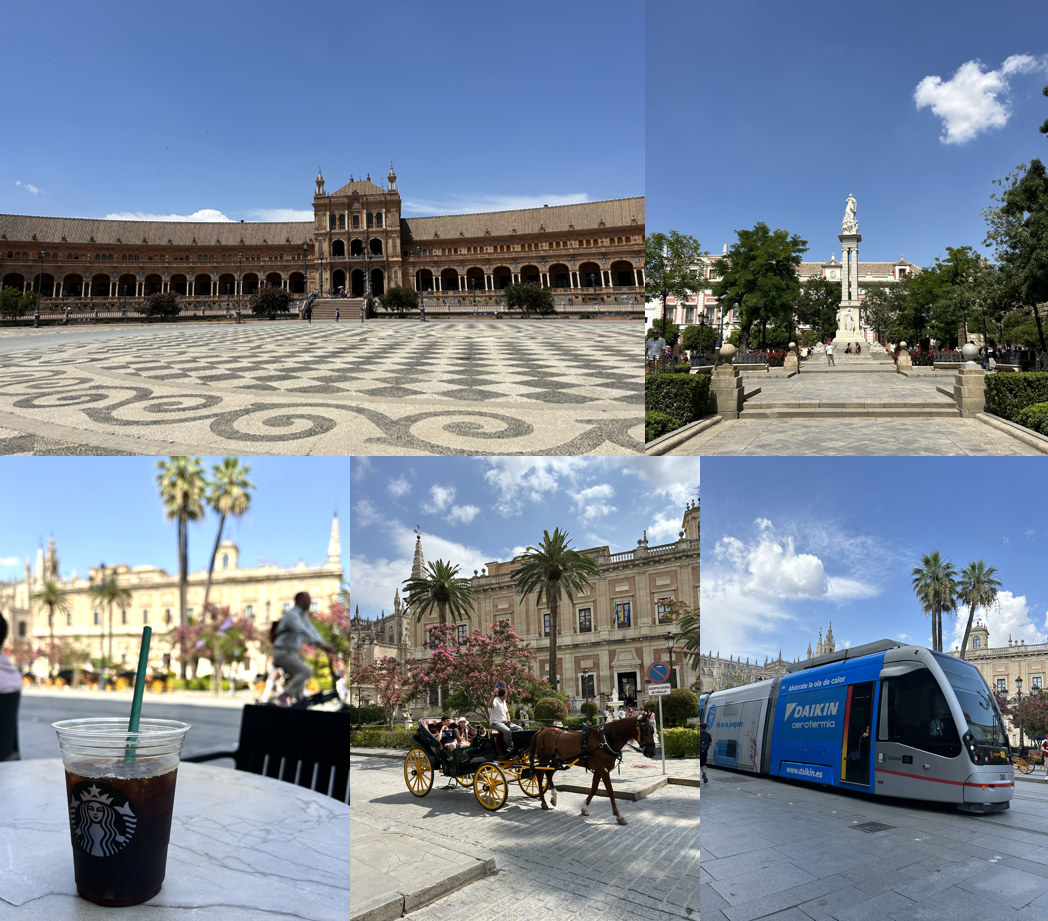평화로웠던 론다를 뒤로하고, 다시 버스를 타고 달려 세비야에 도착. 스페인 광장과 세비야의 구시가지를 구경하며 저녁 일정 전까지 시간을 보냈다. 자유 시간 한 시간이 주어진다는 깃발 대장의 말이 끝나기도 무섭게 미친듯이 스타벅스로 달려가 아아메 한 잔 때리고 불멍하듯이 거리 구경을 하며 이번 여행의 장점만을 복기하는 명상의 시간을 가졌다. '이번 여행 잘 선택했다. 나는 행복하다. 잠을 잘 수 없는 환경, 삼시세끼 같은 음식... 아이스 아메리카노까지 내곁에 없었다면 열사병이 아니라 홧병때문에 저혈압이 치료됐을텐데 이건 아쉽네...'