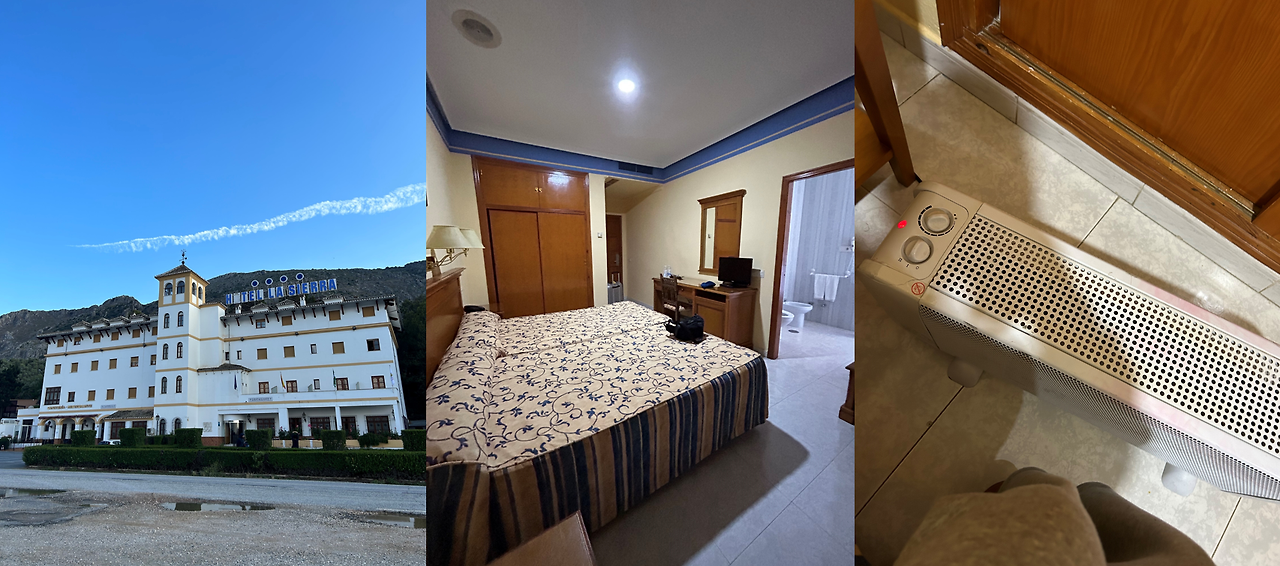 5월 말의 스페인은 일교차가 꽤나 커 낮에는 매우 덥고 해가 완전히 떨어진 저녁에는 서늘한 편인데, 이 숙소는 스페인의 밤 기온보다도 더 낮아서 몸이 오들오들 떨리는데다가 재채기만 해도 공동체 의식을 확실하게 심어주는 방음 수준을 갖추고 있었다. 혹시 주변이 무덤이라 실체없는 허연 것들이라도 왔다 갔나 왜 이렇게 숙소만 추웠을까. 라디에이터를 요청해 방에 들이긴 했지만 온도를 높이기엔 턱없이 덩치가 작은 친구였다.