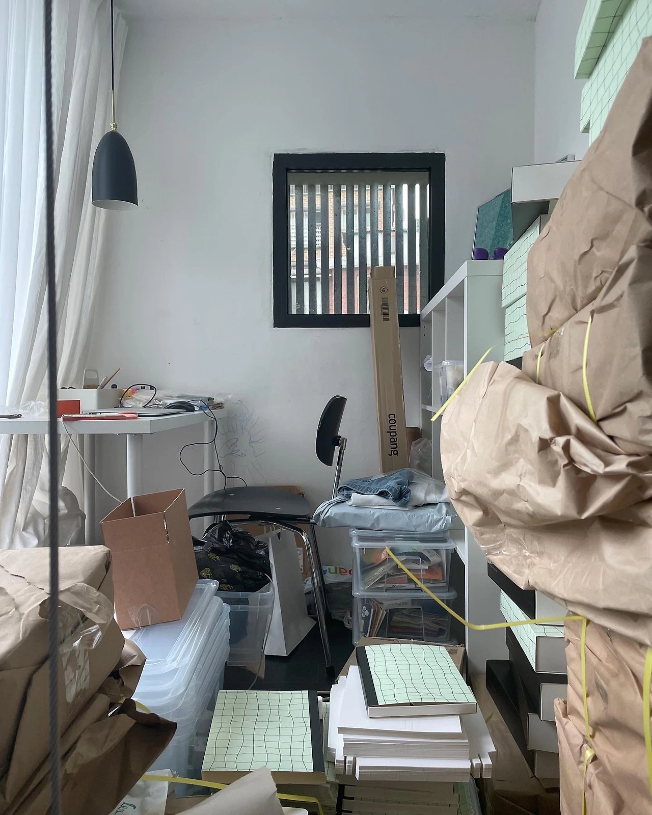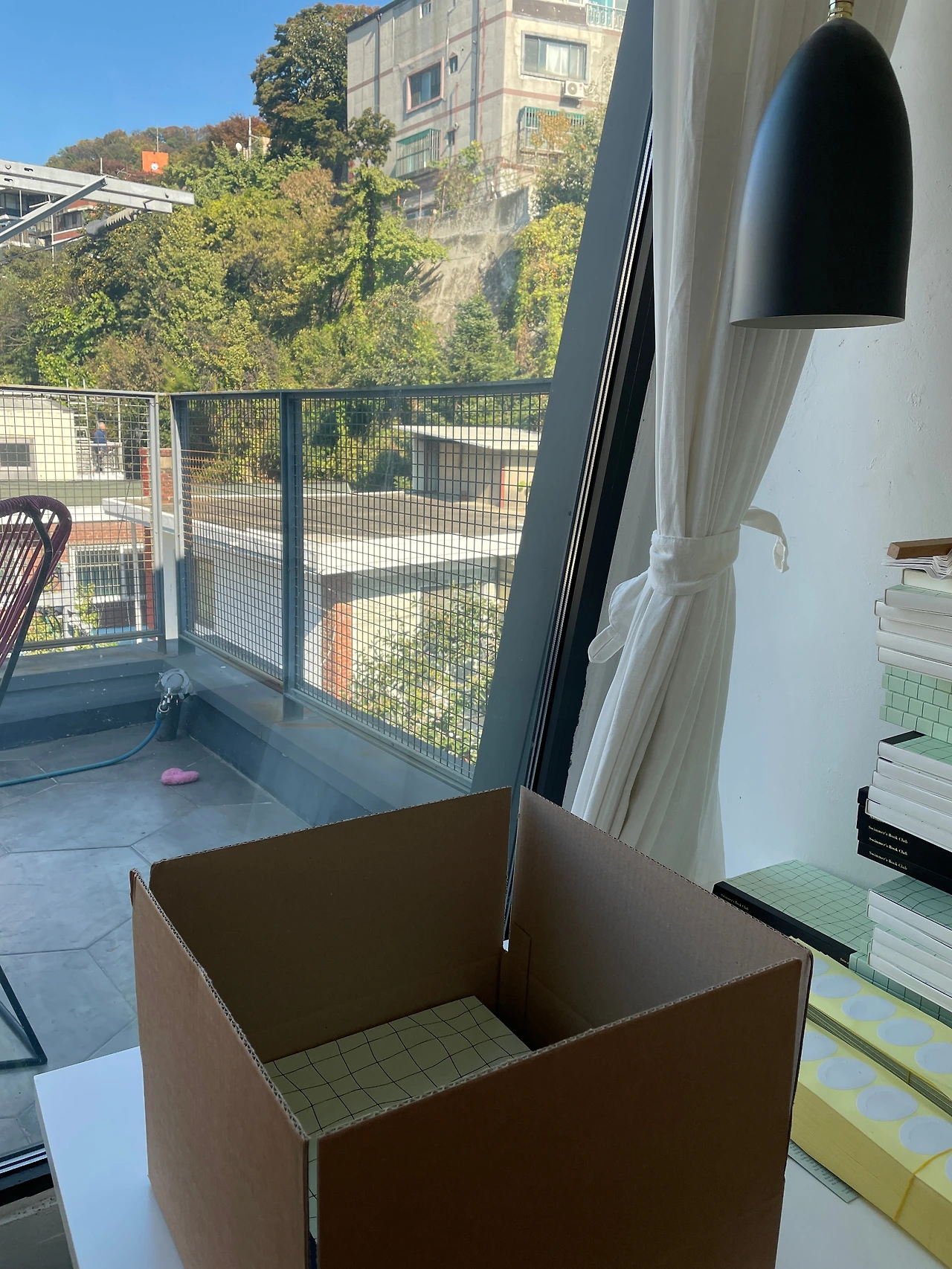 다른 계단보다 좁고 가파르게 설계된 다락으로 향하는 계단을 조심스레 올라가서 브랜드 관련 일도 하고, 책상에 앉아 책을 읽으면서 새롭게 영감을 받는다. 다락은 5층에 있어서 올라가기가 피곤하기도 했고, 사용하기에 너무 작은 평수라서 비가 오는 날 가끔 올라와 통창으로 풍경을 바라보는 용도로 그쳤었다. 하지만 다락에 사무실을 만들면서 어느 때보다 알차게 잘 쓰이고 있는 것 같아서 뿌듯하다. 비록 아름답게 물건들을 배치했던 사무실은 지금은 택배 발송 관련 용품으로 뒤덮이기는 했지만 말이다.