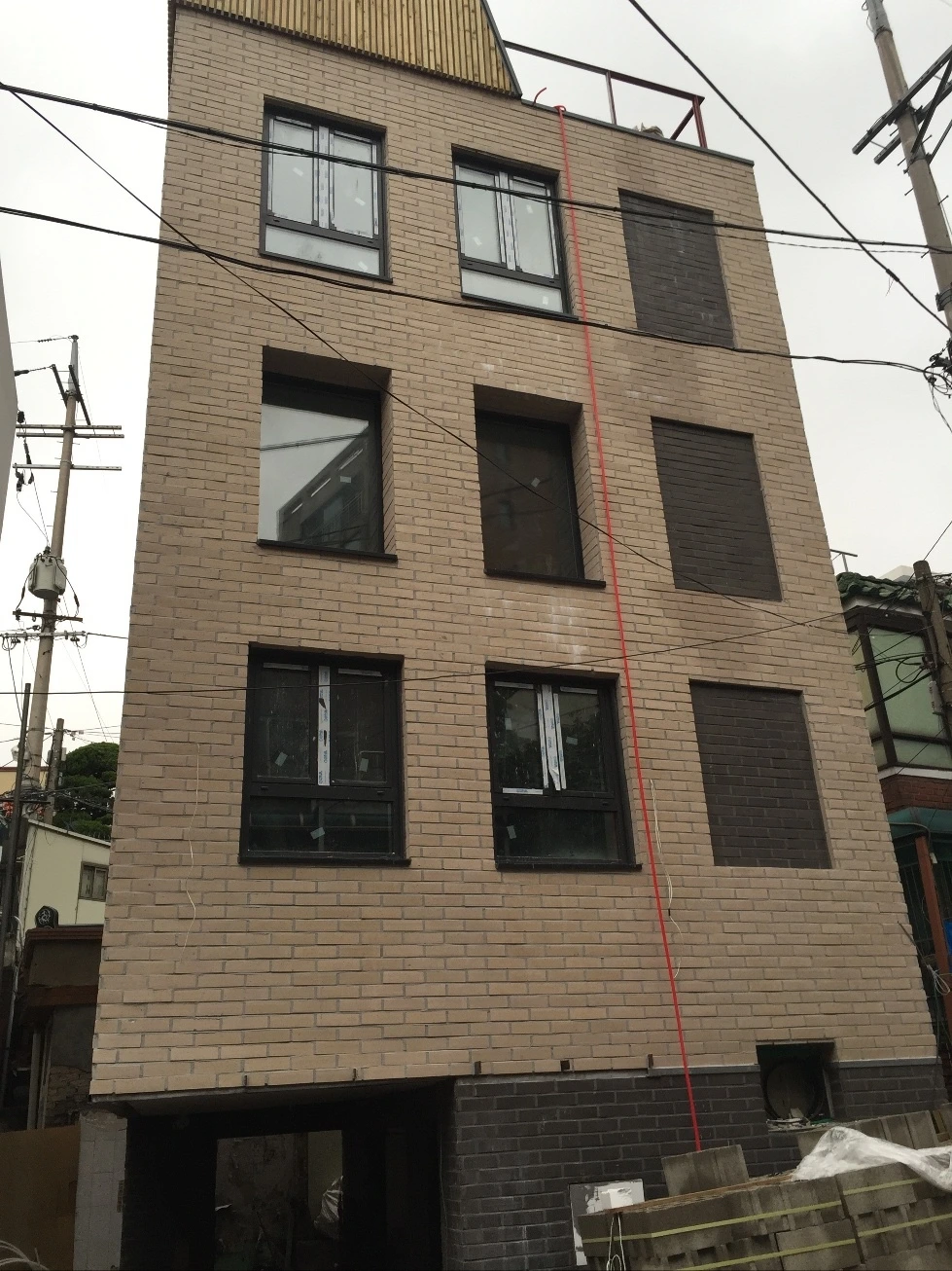 우리 집 모양이나 구조에 대해 놀라지도 않고 들어와 덤덤히 ”유럽 집들이랑 비슷하네 “였다. 건축가 분이 설계를 제안할 때 네덜란드 집들에서 영감 받은 입면도들을 보여주셨고, 한국에 맞게 재해석해 설계하는 것은 어떠냐는 아이디어가 좋아 제안을 수락했다. 이렇게 할아버지 뻘의 네덜란드 집의 양식이 젊고 다이내믹한 에너지가 넘치는 도시인 서울에 재해석되어 시공되었다. 실제로 시공된 집의 입면은 국내에서의 시공경험이 전무하다는 이유로, 혹은 부족한 예산 앞에서 여러 개의 설계 디테일들이 사라져 아쉬운 점이 많았다. 하지만 우리 집의 입면을 바라볼 때면 여전히 네덜란드의 집들이 떠오른다. 모던한 서울에 맞게 재해석되었기에, 네덜란드의 집들의 입면에서 영감을 받았다는 얘기를 듣지 않는다면 네덜란드의 집과 닮았다는 생각이 들지는 않는다. 하지만 영감의 원천을 설명해 주고, 네덜란드 집들의 입면을 보여주면 다들 고개를 끄덕끄덕 한다. 특히 창의 배열이 닮았는데, 건축가가 마지막 창은 가짜 창으로 타일 블록의 컬러만 다르게 해서 창의 균형을 맞추게 한 것은 굉장히 훌륭한 아이디어였던 것 같다.