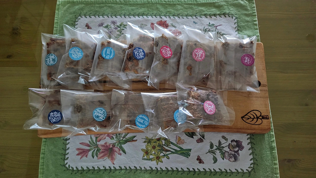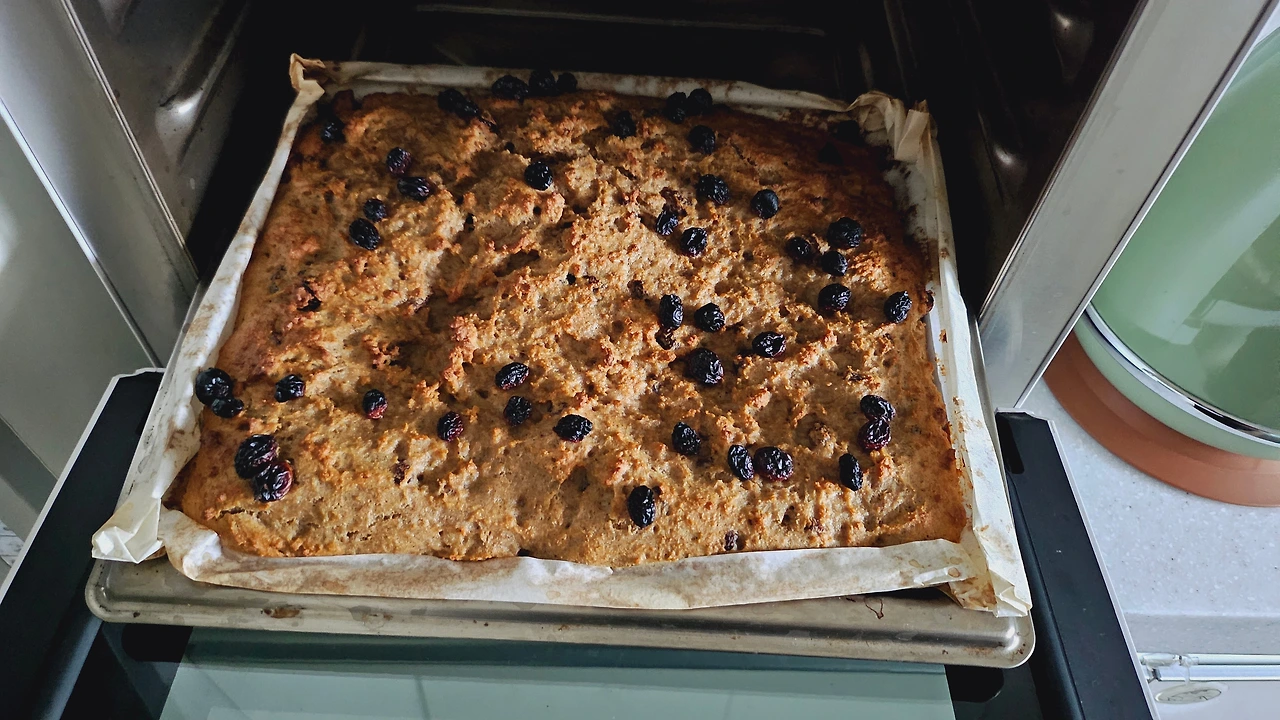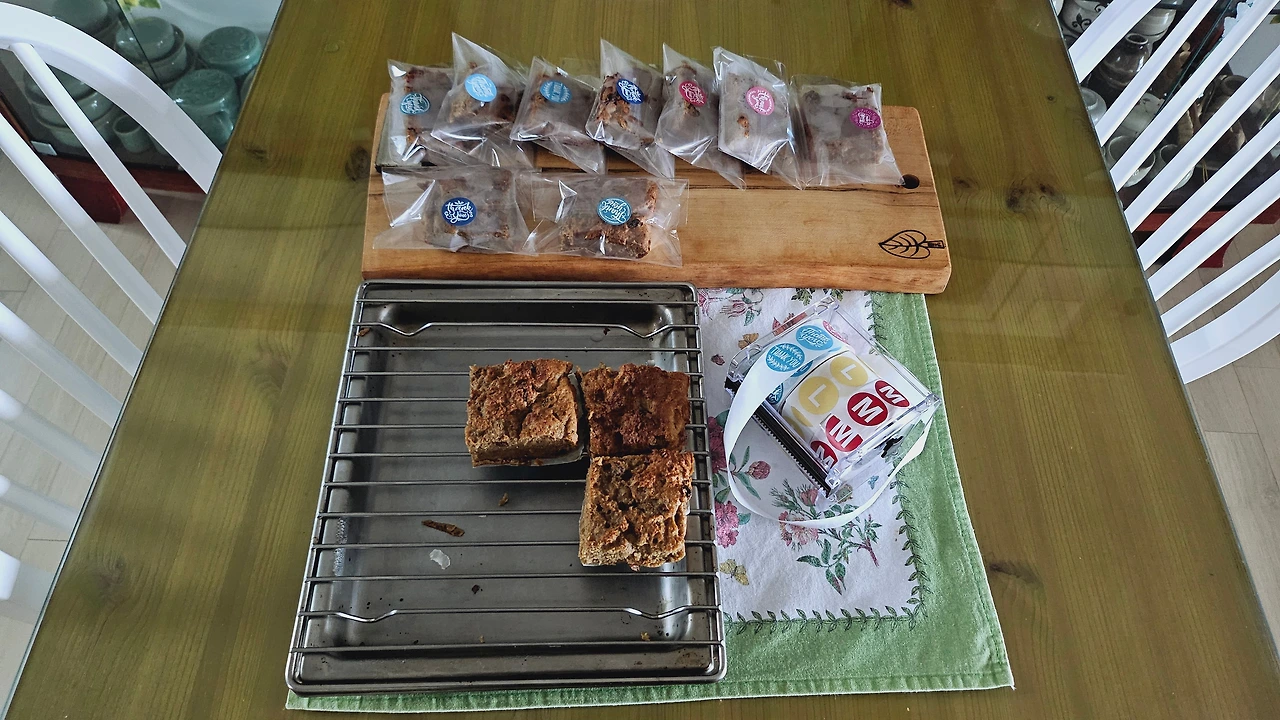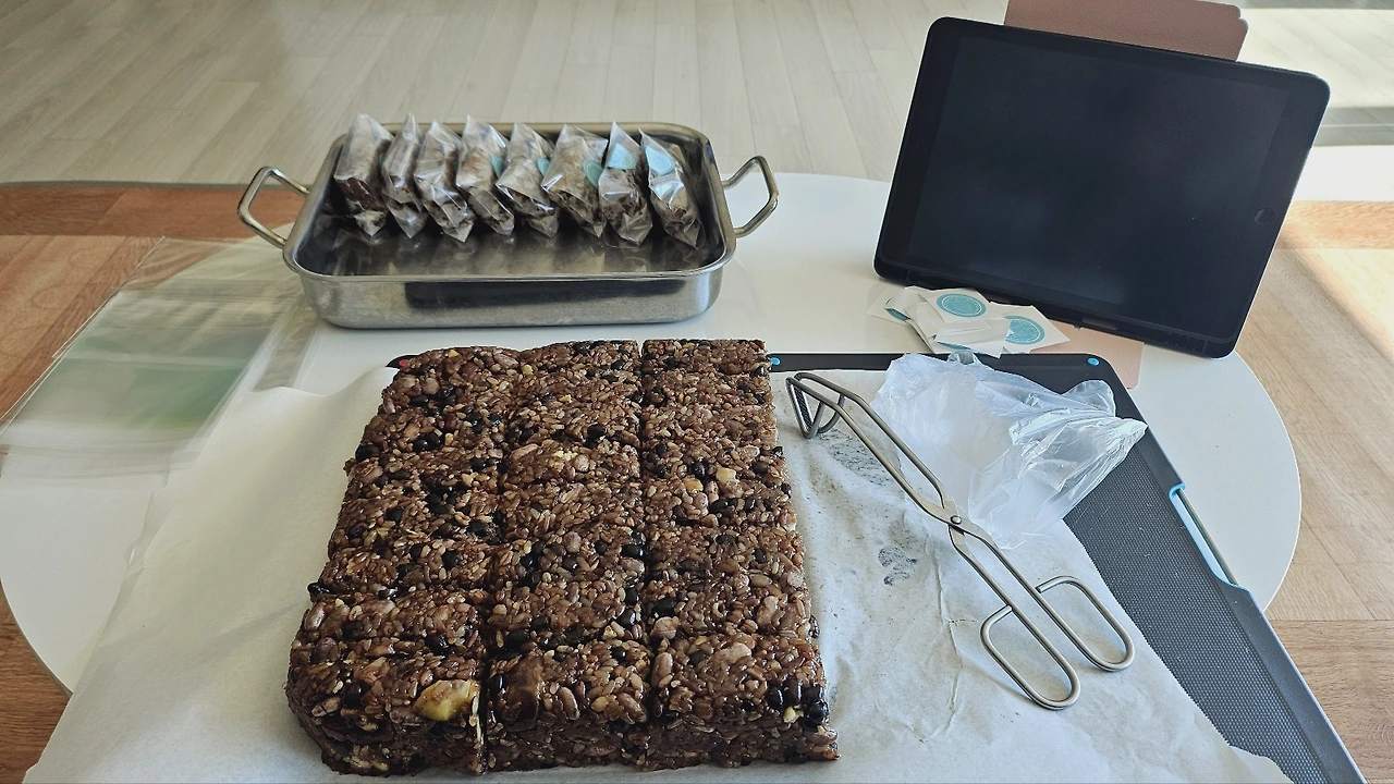 떡과 빵, 쿠키까지 아우르는 정체불명의 비주얼로 구울 때 있던 건포도는 굽고 나서는 없다. 걔만 너무 타서 힘들게 골라냈다.