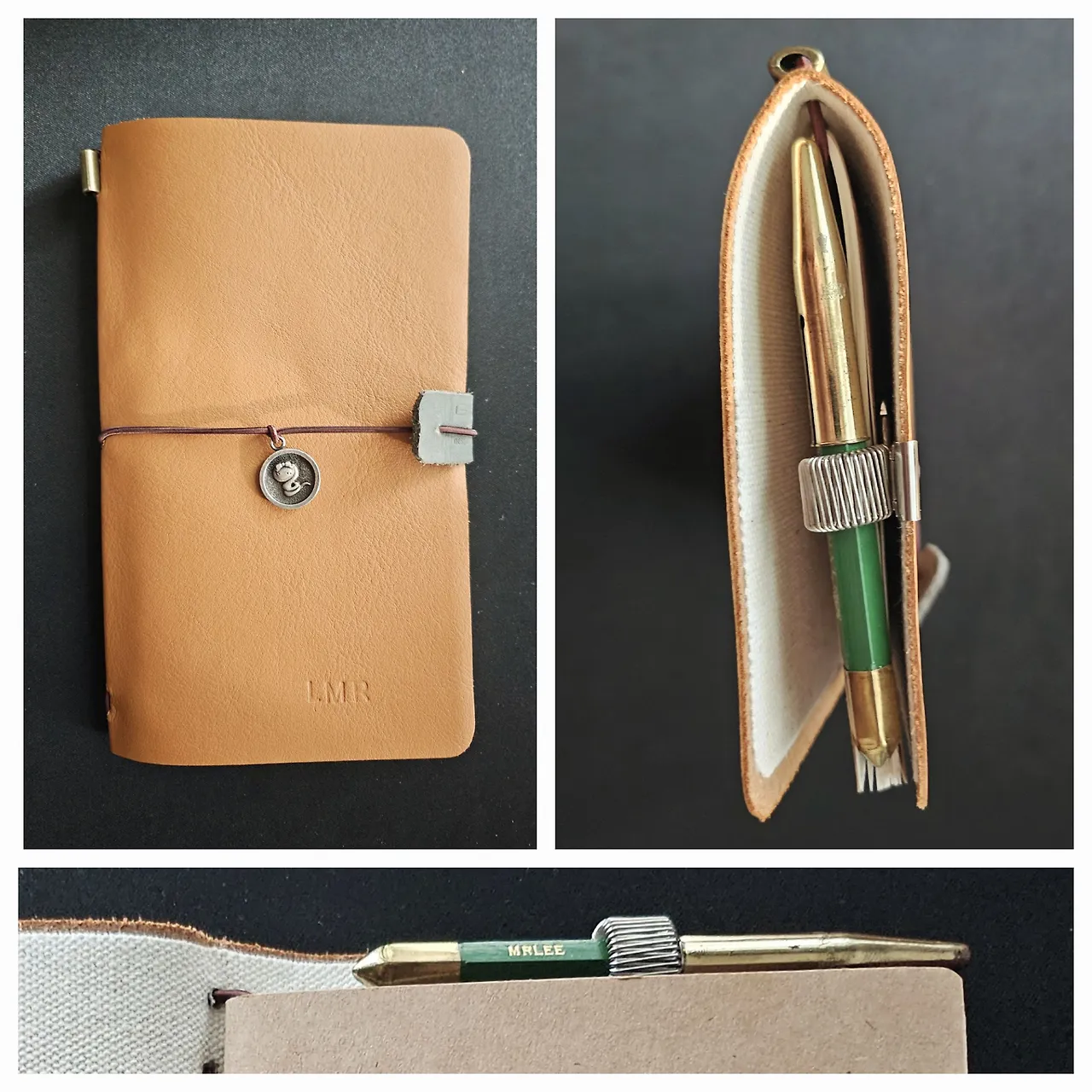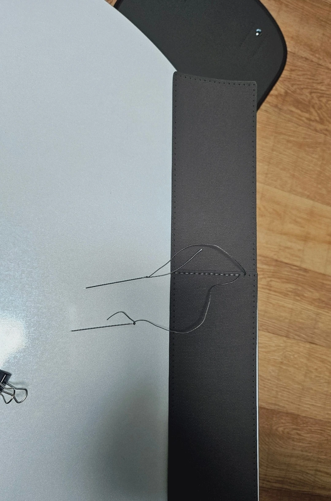 얇은 가죽에 천을 대고, 구멍도 뚫고, 펜던트도 달아서 트레블노트를 만들었다.