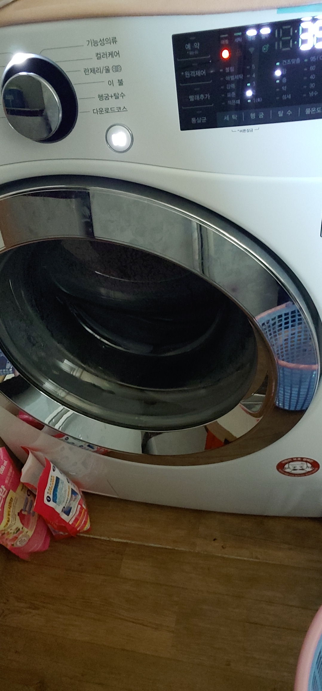 집이 주택이다 보니 사람들은 빨래를 하면 밖에 널면 쉽게 말릴 수 있는 거 아니냐?라는 말을 한다. 하지만 이는 주택에 살아 본 적이 없는 사람들의 말이다. 송화가루와 미세먼지로 빨래를 밖에 널어놓는 순간 세탁기에 들어가기 전보다 더 더러워진다. 여름 장마철이나 겨울철에도 빨래 말리는 게 쉽진 않다. 그래서 반드시 필요한 게 건조기이다. 90분 정도의 시간에 세탁기에서 축축하게 나온 빨래를 뽀송뽀송하게 만들어 준다. 빨래를 집안 어딘가에 널어놓을 필요가 없기에 집안 정리에도 큰 도움이 된다.