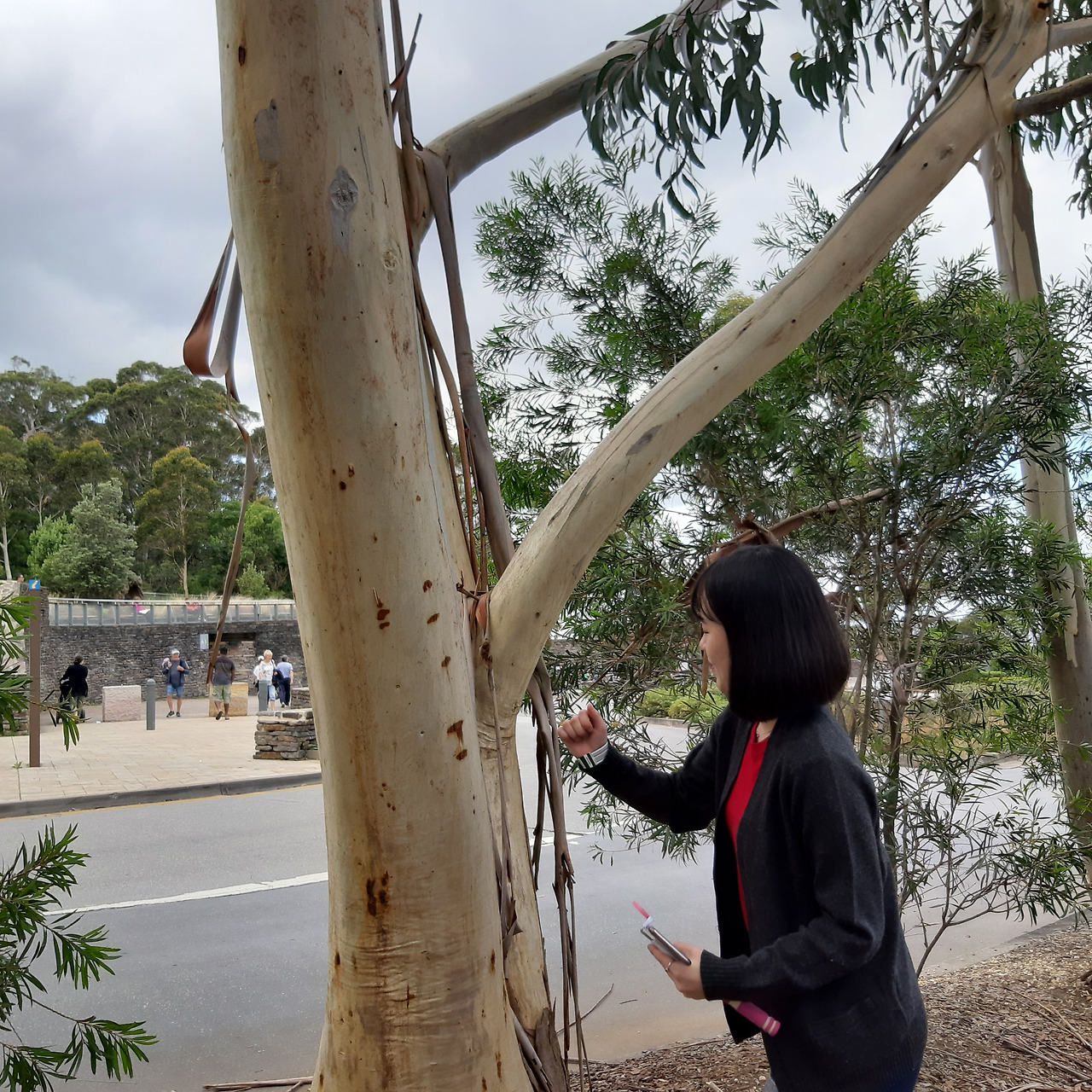 가이드님이 유칼립투스 나무가 얼마나 단단한지 한번 두드려보라고 하셔서 주먹으로 쿵쿵.