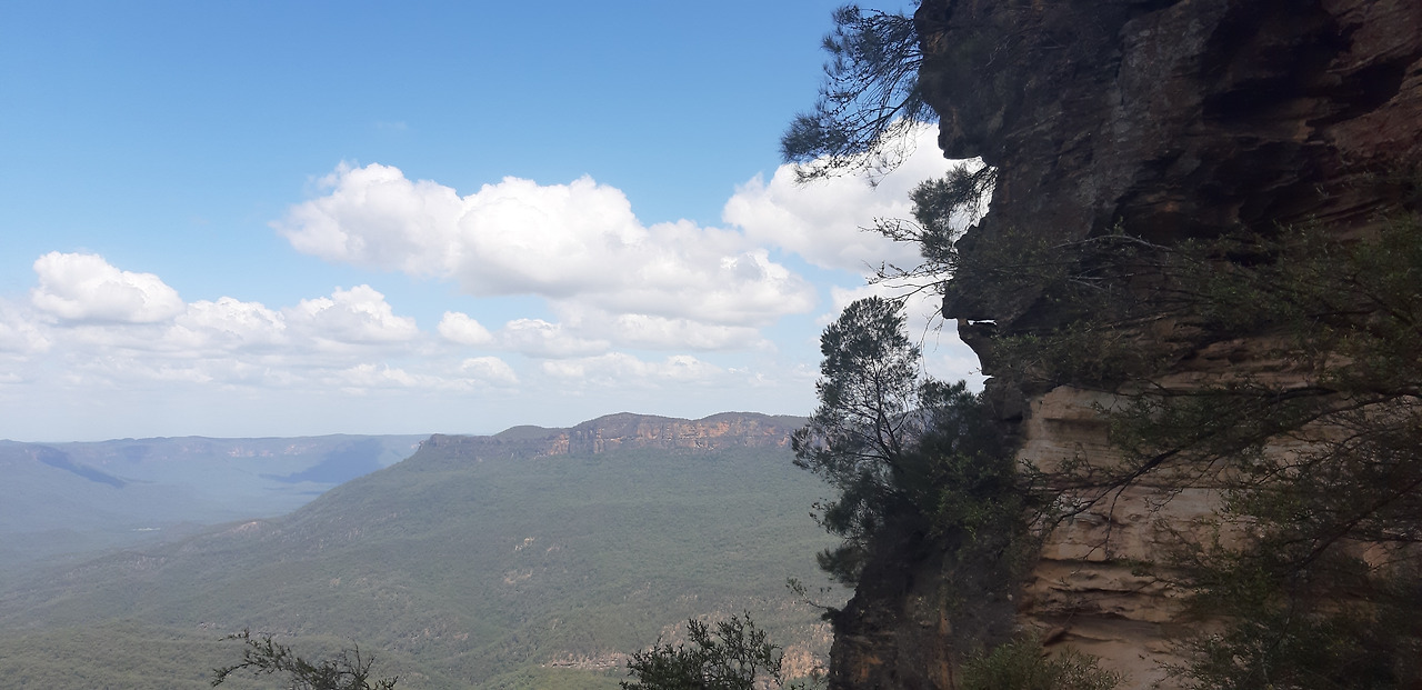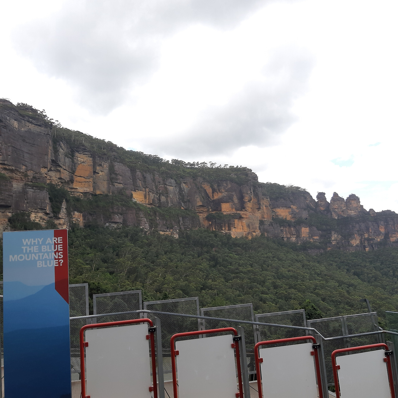 블루마운틴 국립공원에 도착했다. 블루마운틴은 멀리서 보면 초록색 나무들로 이루어진 능선이 파란색으로 보인다고 해서 이름 지어졌다고 한다! 실제로 점점 산으로 올라오면서 멀리 바라보니 푸른색이 보였다.