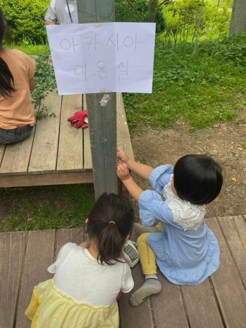 아카시아 꽃 피는 오월에는 아이들과 선생님은 ‘아카시아 미용실’을 열었다. 이때 들은 이야기로는 갓 따온 줄기로 머리를 돌돌 묶으면 꼭 고데기한 것처럼 웨이브가생긴단다.