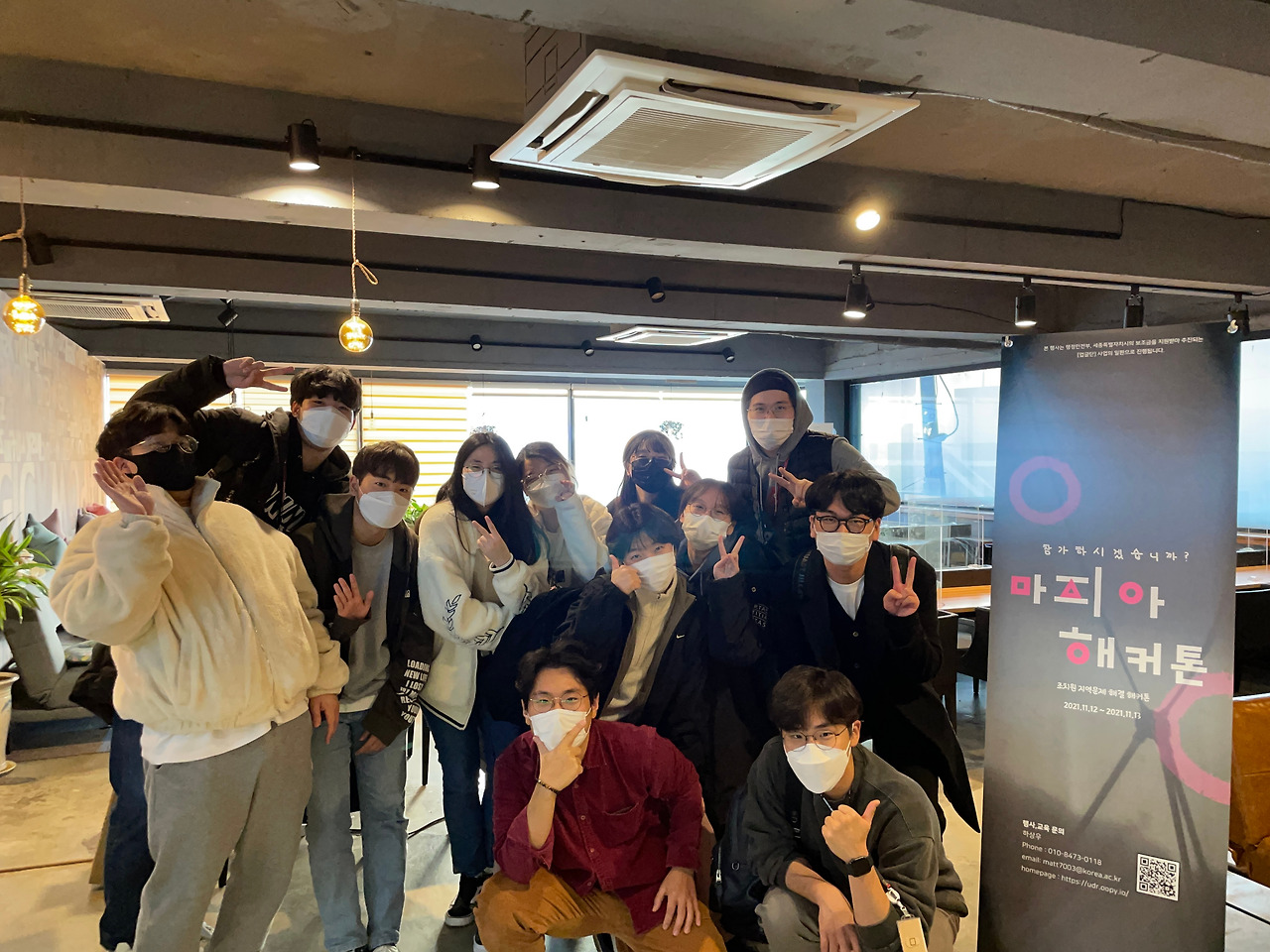 언더독 레볼루션은 작년에 설립된 후 바로 청년희망팩토리의 <업글단> 사업에 참여하게 되었는데요. 이 활동을 통해 멘토링과 교육을 받으며 단체의 기반을 다졌습니다. 그 후 <업글단>에서 지급되는 프로젝트비를 활용해 언더독 레볼루션 회원을 대상으로 ‘마피아 해커톤’을 개최했어요. 참여자들이 직접 지역의 청년문제를 발굴하고 그로부터 솔루션과 MVP를 도출해낸 뒤, 실제 서비스로 구현까지 해보는 방식으로 진행했는데요. 첫 해커톤이었기 때문에 우선 회원을 대상으로 진행하고 참여 회원들로부터 피드백을 받았어요. 이를 바탕으로 프로그램을 보완한 후, 회원 외에도 누구나 참여할 수 있는 해커톤을 한 번 더 개최했어요. 이전부터 저희만의 해커톤을 정기적으로 개최해보고 싶었는데 <업글단>을 통해 그 계획을 이룰 수 있었어요.