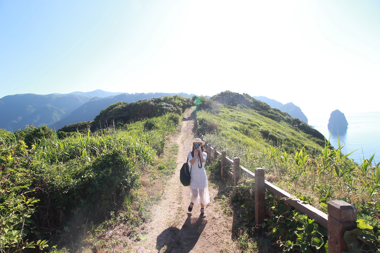 나리분지는 울릉도에서 유일한 평지로, 말 그대로 산 속에 분지가 만들어진 마을이라 사방이 산으로 둘러쌓여 있다. 교과서에서 배운 분지를 여기서 처음 봤다. 마을은 고요하고 평화로웠다. 이곳에서 산채비빔밥도 먹고 카메라를 삼각대에 놓고 사진도 찍었다. 우리 부부는 울릉도에 간 김에 셀프로 리마인드 웨딩 촬영을 했는데 너무 즐거운 추억이었다. 하얀 원피스에 운동화를 신고 산을 오르고 바다를 건너며 웨딩 사진을 찍었다. 두 다리는 힘들었지만 사진에 담긴 사진은 그 어느 때보다 행복해보였다.