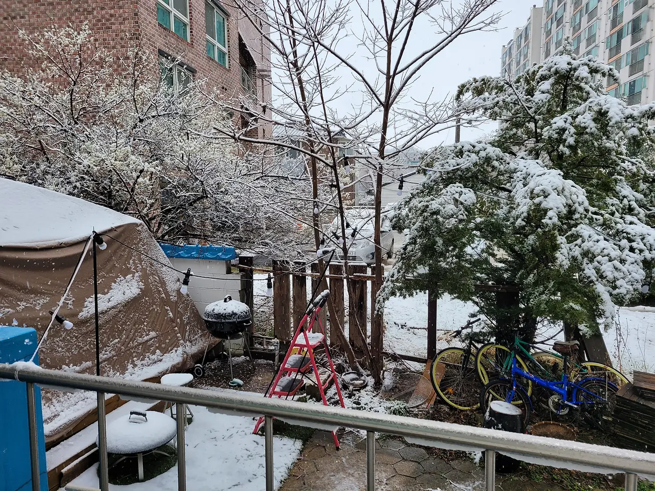 모든 것이 완벽했다. 봄눈이 내리는 날씨, 함께인 가족, 고요한 마음. 언젠가 또 다시 소중한 일상이 깨지고 마음이 요동치는 날이 오더라도 오늘의 마음을, 행복했던 마음을, 낭만 넘치던 마당 캠핑의 기억을 간직해야지.