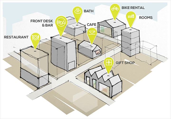 커뮤니티 호텔은 지역의 매력과 잠재력을 발굴하고 이를 증폭하여 관광객과 이어주는 역할, 지역민과 관광객 간의 직접적인 교류와 소통을 발생시키는 역할, 지역 전체를 브랜딩하여 지역경제를 함께 상승시키는 역할을 한다.