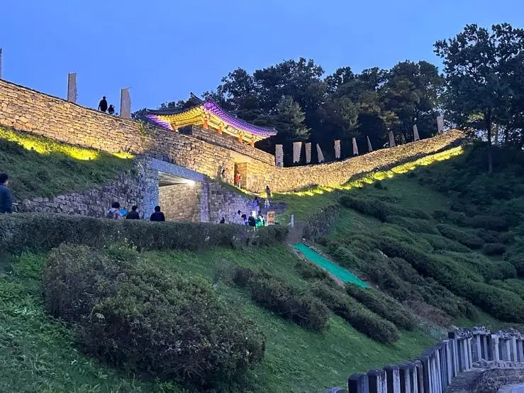 미르섬의 바로 뒤편에는 ‘공산성’이 웅장한 자태를 드러내고 있다. 백제 시대 도읍지인 공주를 방어하기 위해 지어진 산성으로, 백제가 부여로 천도하기 전까지 64년간 백제를 수호하는 요충지로서 역할을 했던 곳이다.