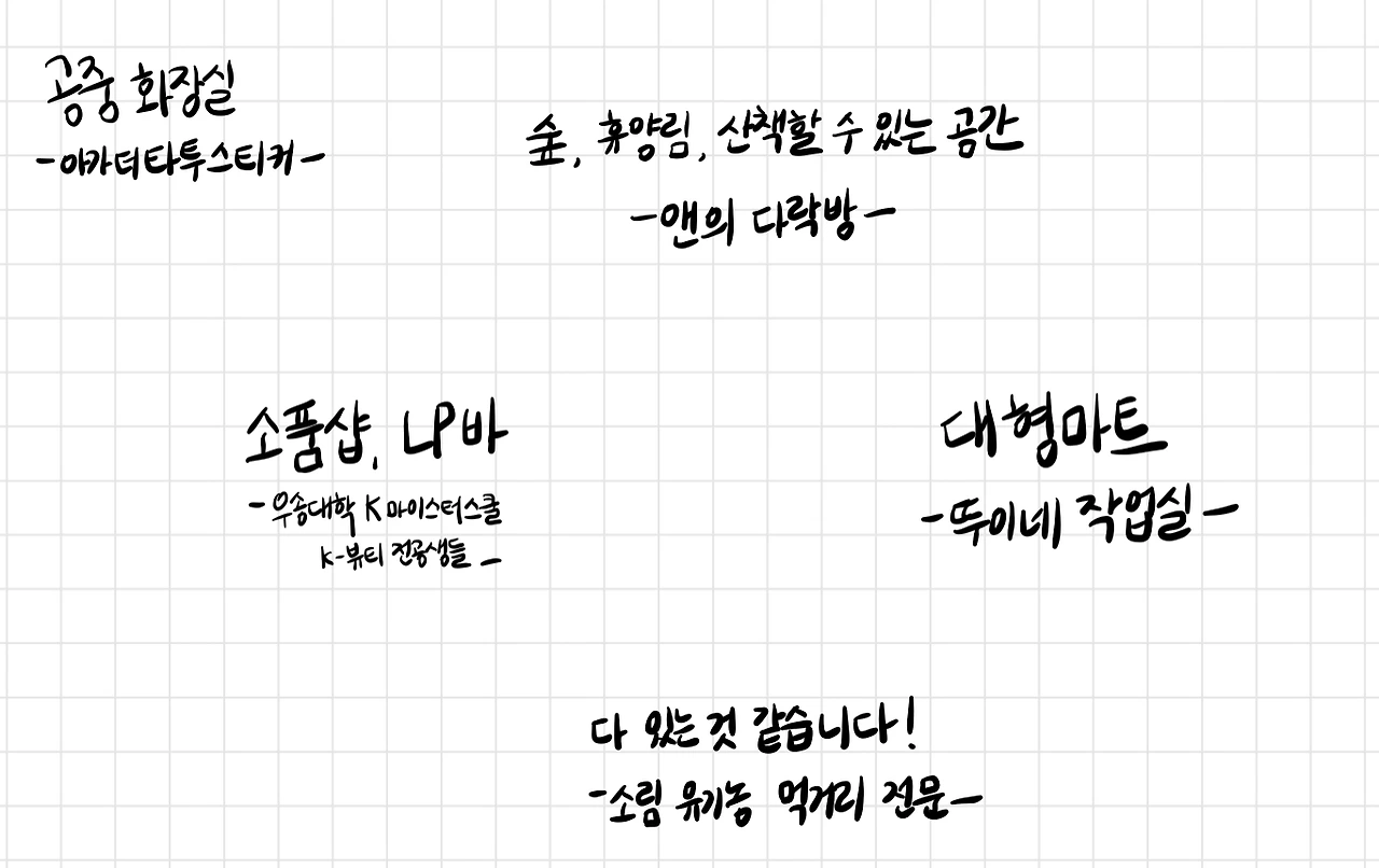 대부분 ‘핫플’로 조명되는 강북의 지역들도 오래된 주택 단지 속에 존재하는 좁은 골목길들이 여전히 살아있고, 그 곳에서 피어나는 문화와 예술 컨텐츠들이 있기 때문에 결국 사람들을 끌어 당기는 거거든요. 그 ‘길’이라는 개념이 살아 있기 위해서는 아파트 단지의 무자비한 확산을 막아야 하겠죠.