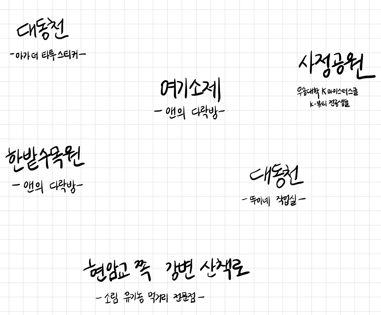 사실 현재로서는 소제동에 음식점 및 카페들이 대부분인데 여기에 문화와 예술 및 체험 공간들이 더해지면 좋겠어요. 새롭고 다양한 공간적 시도들이 이루어져 문화와 예술, 음식과 볼거리의 집합체로 성장했으면 하는 바람이 있죠. 소제동이 쇼핑 또는 체험, 혹은 휴식 등 다양한 경험이 가능한 공간으로 변화하길 바랍니다.
