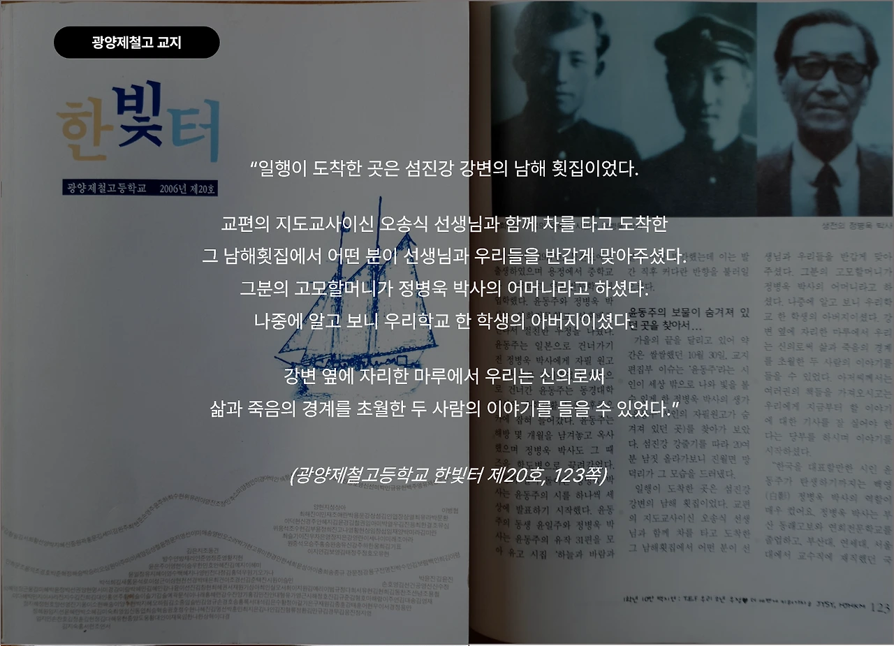 정병욱 가옥 소유주의 딸이 광양제철고에 재학 중이던 시기에 교지편집부 학생들이 가옥의 이야기를 듣고 취재를 진행했다. 2005년, 광양제철고 교지에 이 가옥이 윤동주의 유고를 보존하고 부활시킨 공간이라는 이야기가 실렸고, 지역 신문을 통해 더욱 널리 알려지게 되었다. 이후 광양시청에서도 이 사실에 주목하여 가옥을 근대 문화유산으로 등록하는 일에 큰 관심을 보였다. 결국, 정병욱 가옥은 2007년 등록문화재 제341호로 지정되어 ‘윤동주 유고보존 정병욱 가옥’이 되었다. 정병욱 가옥을 세상에 널리 알리는 데 공헌한 광양제철고의 교지가, 윤동주라는 시인이 빛을 볼 수 있도록 헌신한 정병욱과도 닮아 있다는 생각이 들었다.