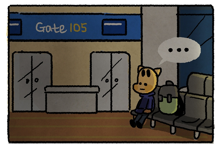 105 터미널은 멀었다. 전철을 타고 내려서도 제일 끝에 위치해있었다. 탑승 2시간 전에 게이트 앞에 도착했다. 야밤의 공항은 면세점도 다 문을 닫아서 구경할 거리도 없다. 곳곳에 환승을 기다리며 누워 자는 여행객들만 보일뿐이다. 기분이 설렘 반 두려움 반이다.