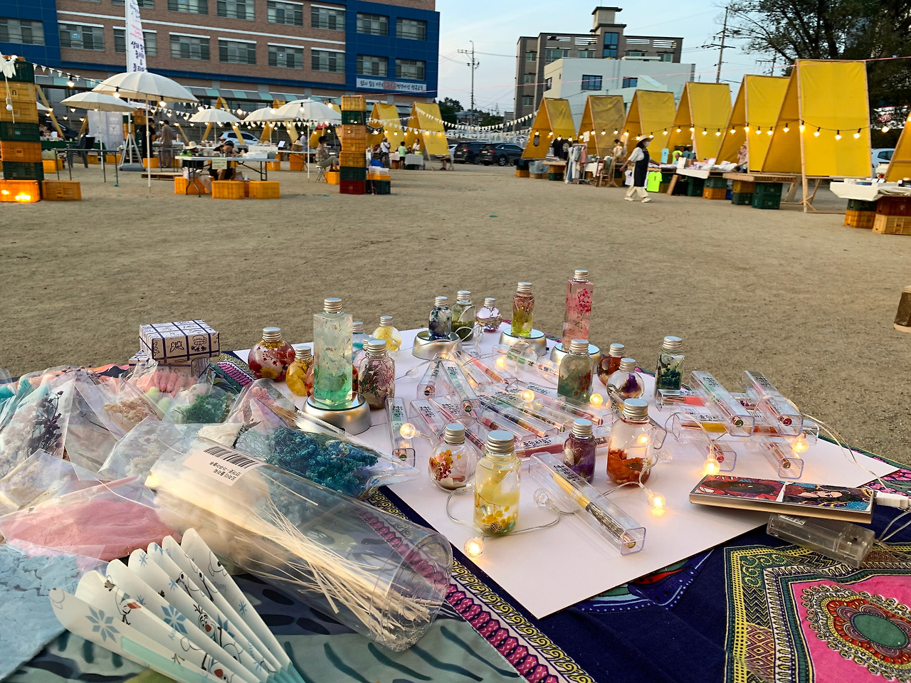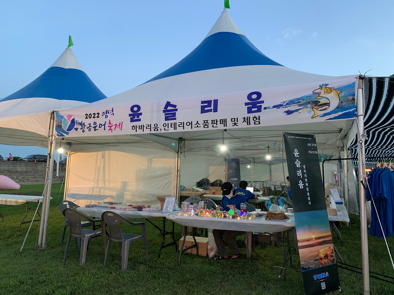 영덕 7주살이의 5주 차쯤에 영덕군청 사이트에 프리마켓 모집을 보고 은어축제에 참여하게 되었어요. 부스에서 하바리움을 판매하고 체험도 진행했었는데 반응이 좋았고 이전에 진행되었던 '뚜벅이 장터'에서 영덕군 담당자분께서 연락처를 알아가시면서 여러 기회들이 생기고 제가 인프라에 들어가게 되었어요.