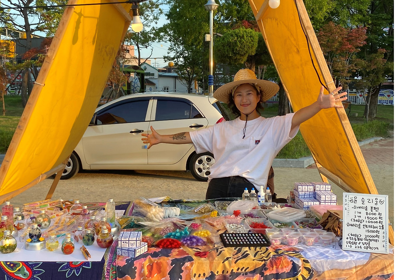 그 후 '제1회 뚜벅이 장터'에서 판매를 했었는데 장 보러 오신 분들이나 가게 사장님들이 관심을 가지면서 지인들한테 사가라고 하시고 직접 선물용으로도 구매하시더라고요. 그 덕분에 100개가 넘는 하바리움을 판매할 수 있었어요. 또 차량에 놓을 수 있도록 만들어 달라는 요청과 내년에도 와 달라는 얘기를 해주셔서 새로운 아이디어와 내년에 대한 기대가 생긴 시간이었습니다. 이런 얘기들을 들으니 가능성을 더 보게 되었고