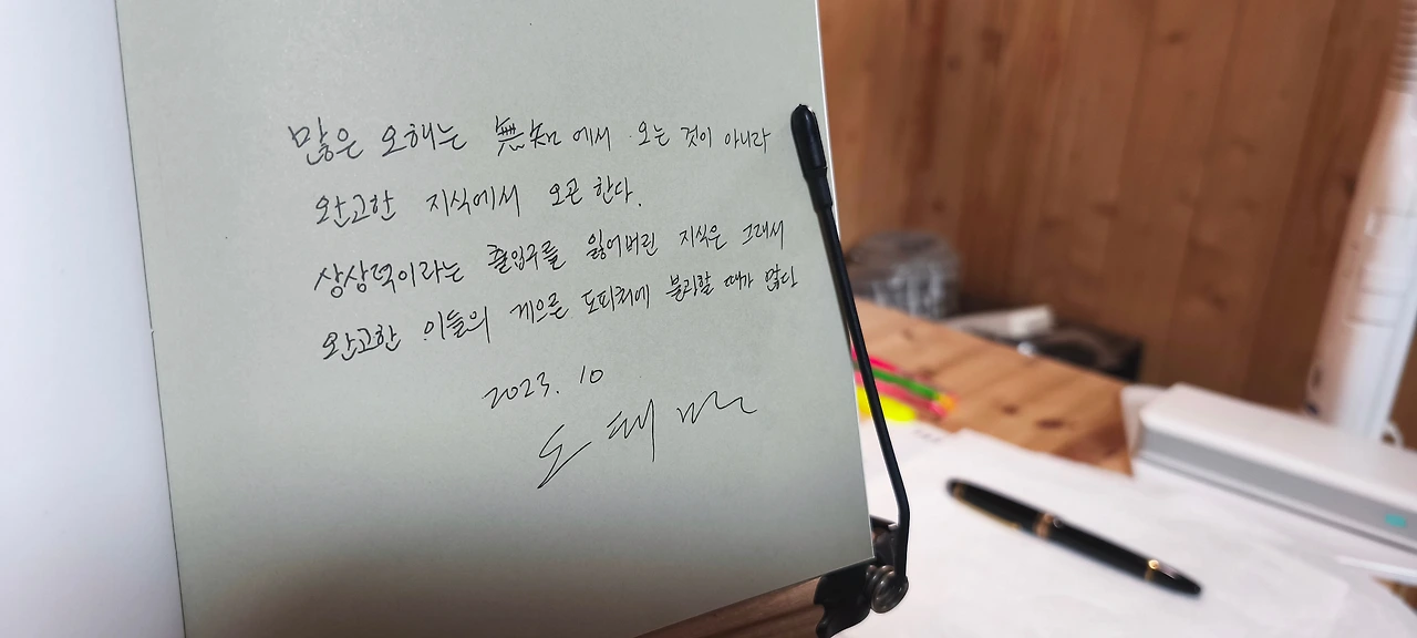 늦은 저녁에 오랜만에 가까운 트랙에서 걷다뛰다를 하면서 유튜브로 어떤 대학교수의 국제 정세 분석을 듣는데 계속 듣다 보니 좀 말이 안 되는 이야기를 하는 것이었다. 그분 나름대로 가정과 가설을 세우고 추론을 하는데 그 가설이 잘못되었다는 것을 쉽게 알 수 있었다. 소위 말해서 사이비다. 사이비의 특징은 잘 나가다가 끝에서 살짝 달라지는 것. 중국이 대만을 침공할 수 있다고 하고 미국하고 거래를 잘하면 미국이 대만을 포기할 가능성도 있다고라? 지정학적으로 말도 안 되는 헛소리를 하네. 더 이상 들을 가치가 없어서 우상단 X를 눌러서 껐다. 그분의 어처구니없는 논리의 비약을 생각하다가 요즘 읽고 있는 오태민 작가의 책 「더 그레이트 비트코인」의 간지에 오작가님이 수기로 적은 부분이 바로 이 경우구나 싶었다. 소위 공부 좀 했다는 대학 교수라는 이의 지식의 완고함이라는.